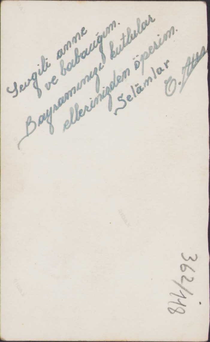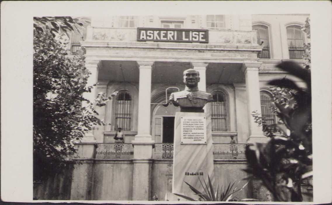 Bursa Askeri Lisesi gece görünümü ile avludaki Atatürk büstü, 2 adet, arka yüzü ithaf yazılı, Foto Venüs, 10x6cm