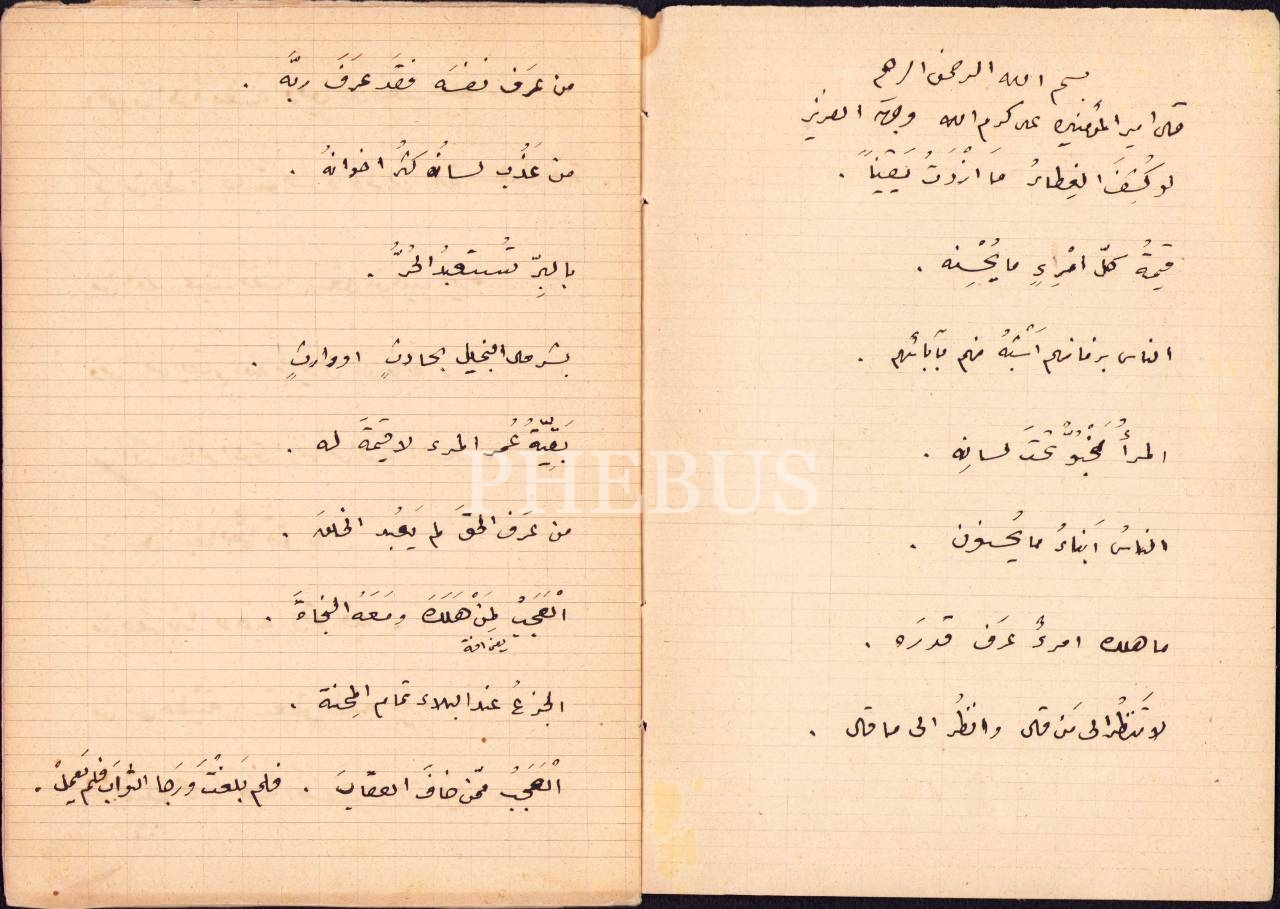 Şahsî Arapça Söz Defteri, "Hz. Ali'nin Efendimizin Hikmet Sözleri", 18 syf., 15x21 cm