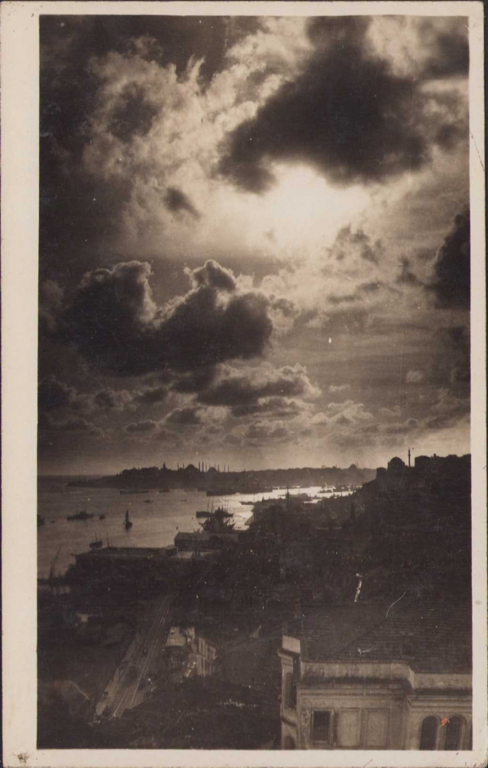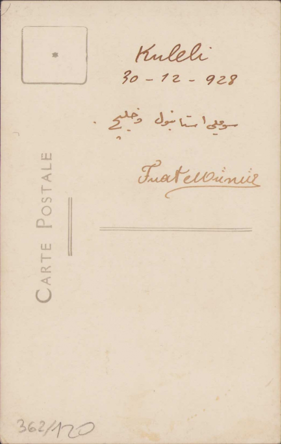 Kuleli Askeri Lisesi'nden İstanbul manzarası, 1928 tarihli, arkası Osmanlıca yazılı, 9x13cm