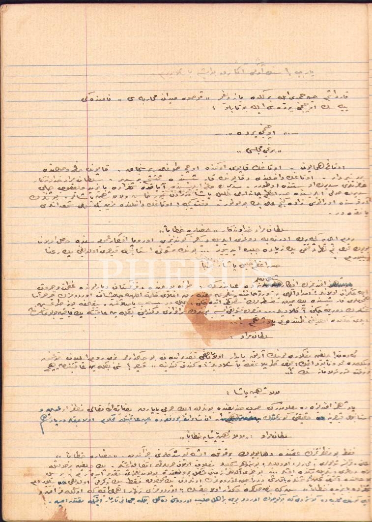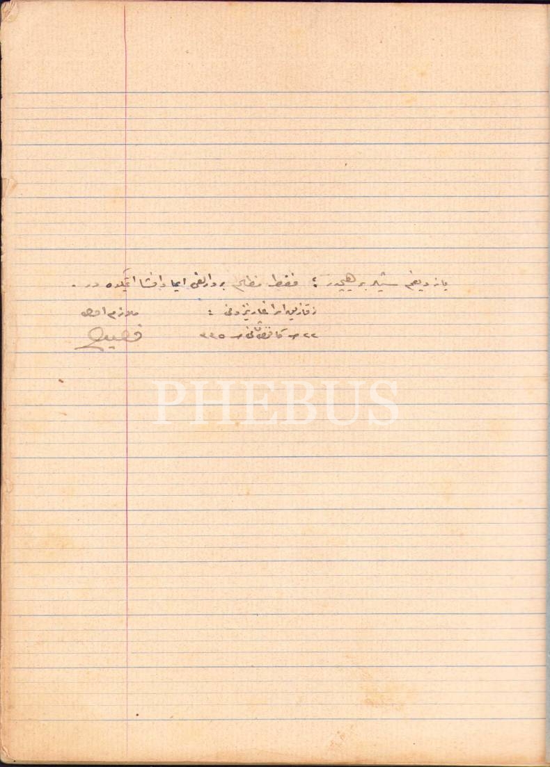 Osmanlıca "Kosova Meydan Muharebesi" Piyesi ile "Annibal" Adlı Metin, Mülazım-ı Evvel F[?]'ye ait defter, 1335; 36 syf., 18x23 cm