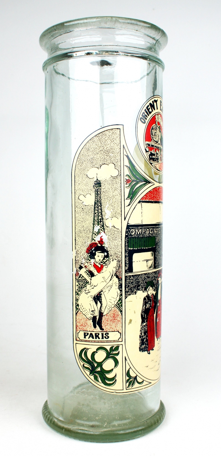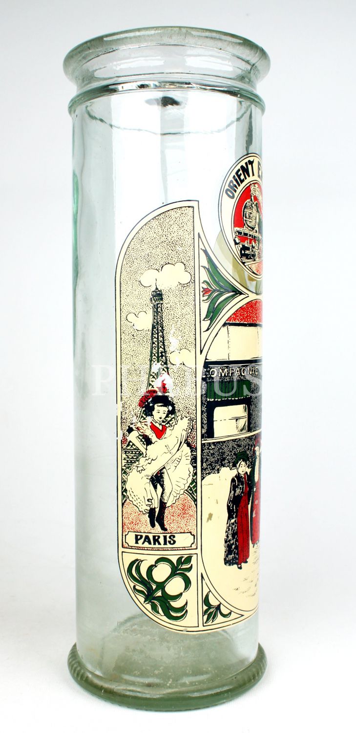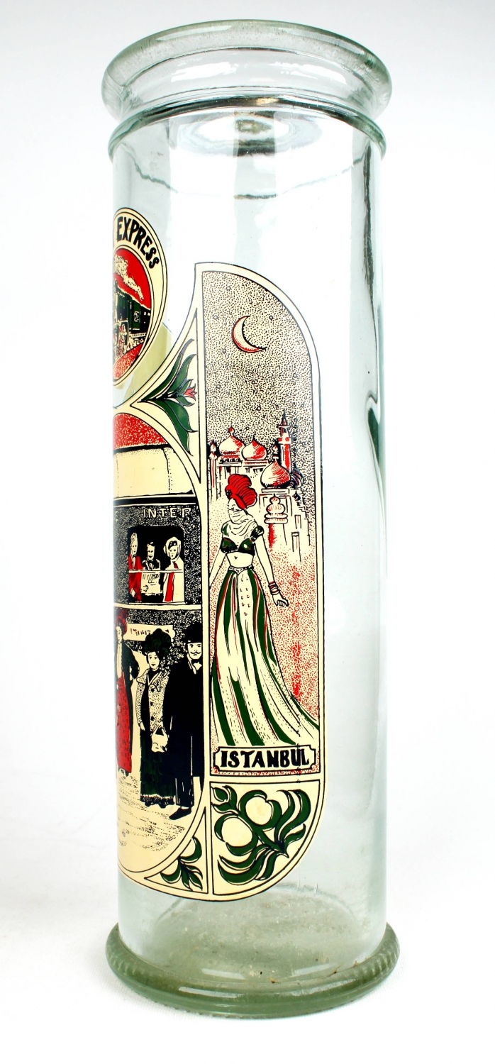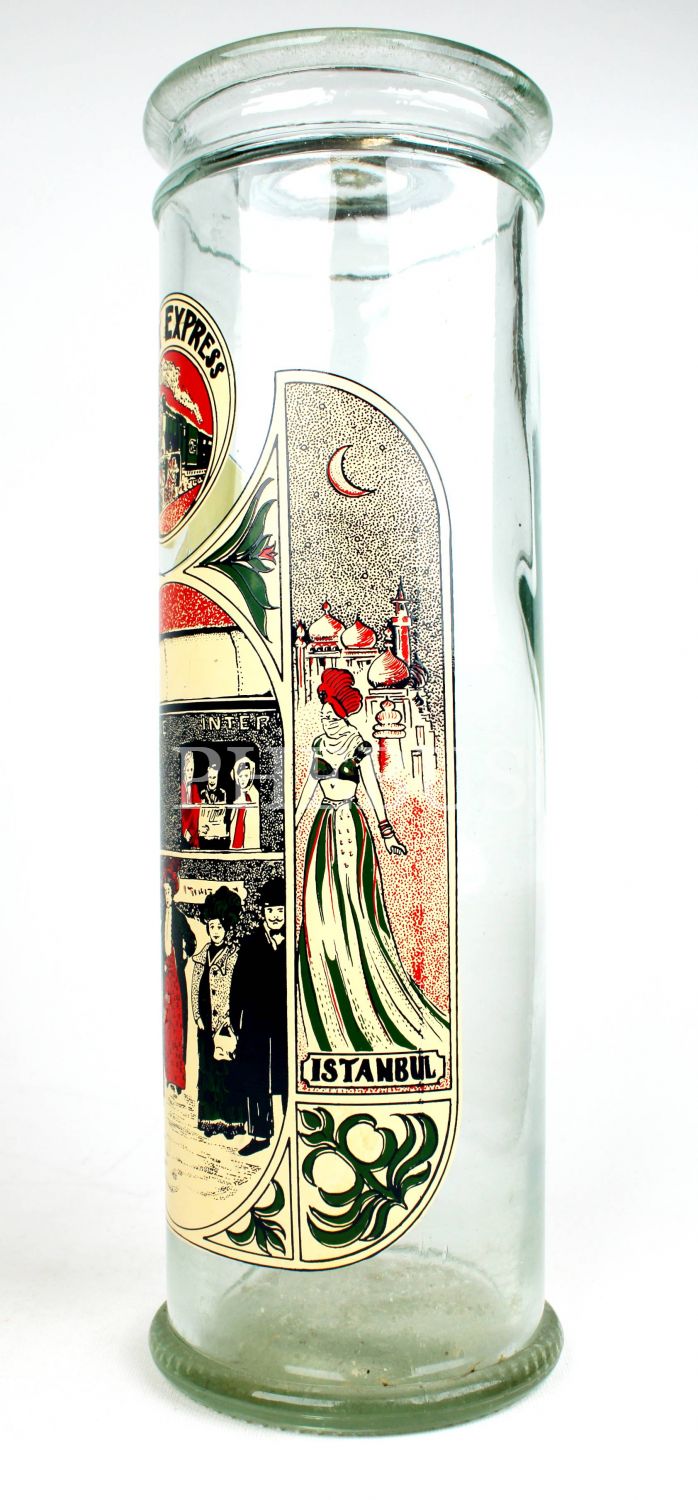 Orient Express Paris-İstanbul hattı büyük boy cam makarna kavanozu, 1930lar