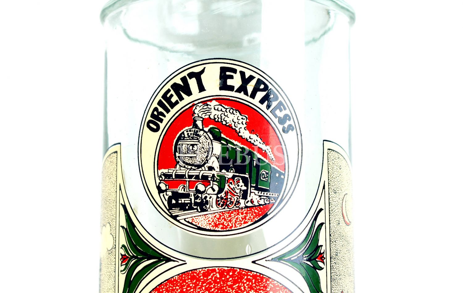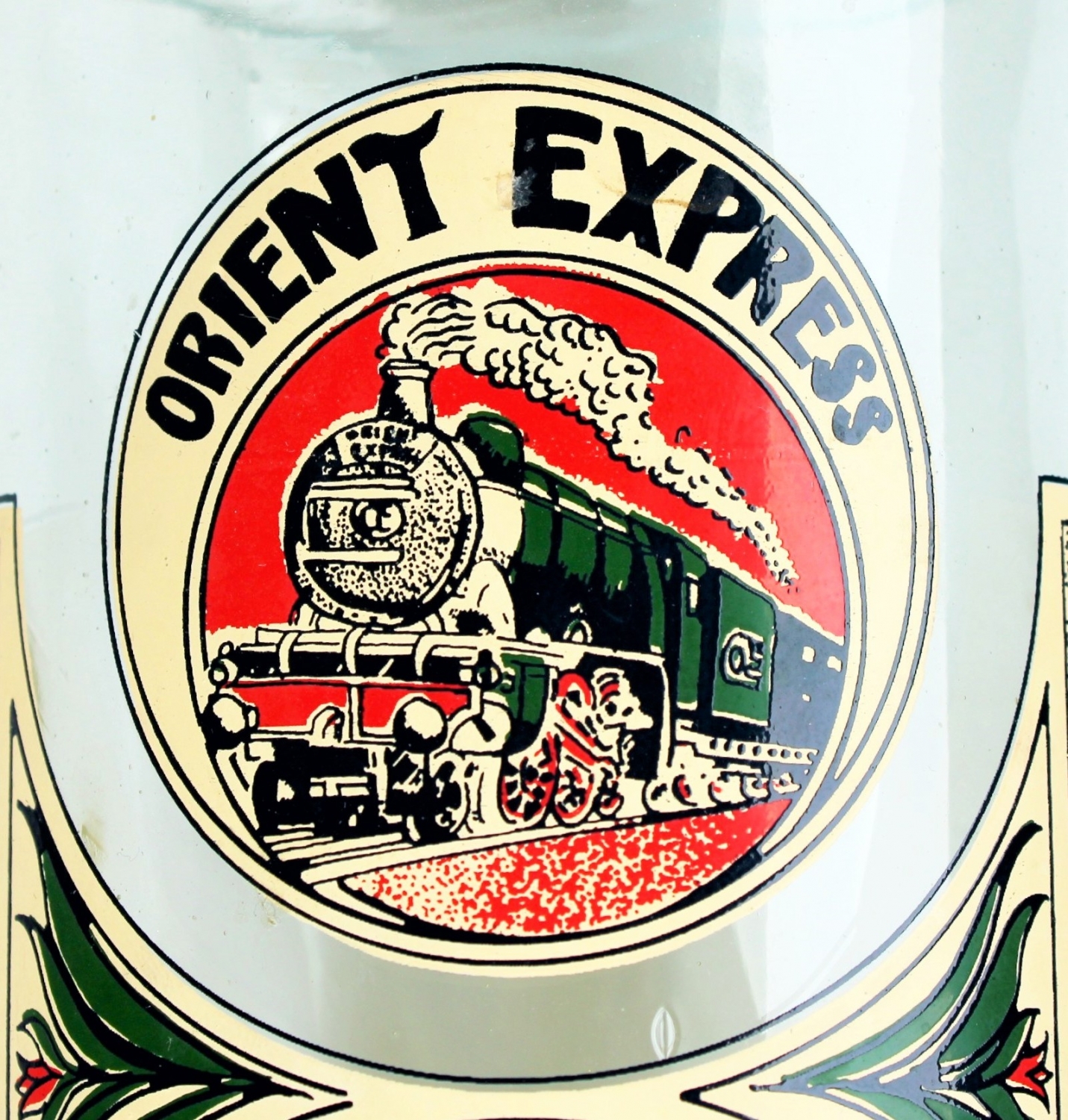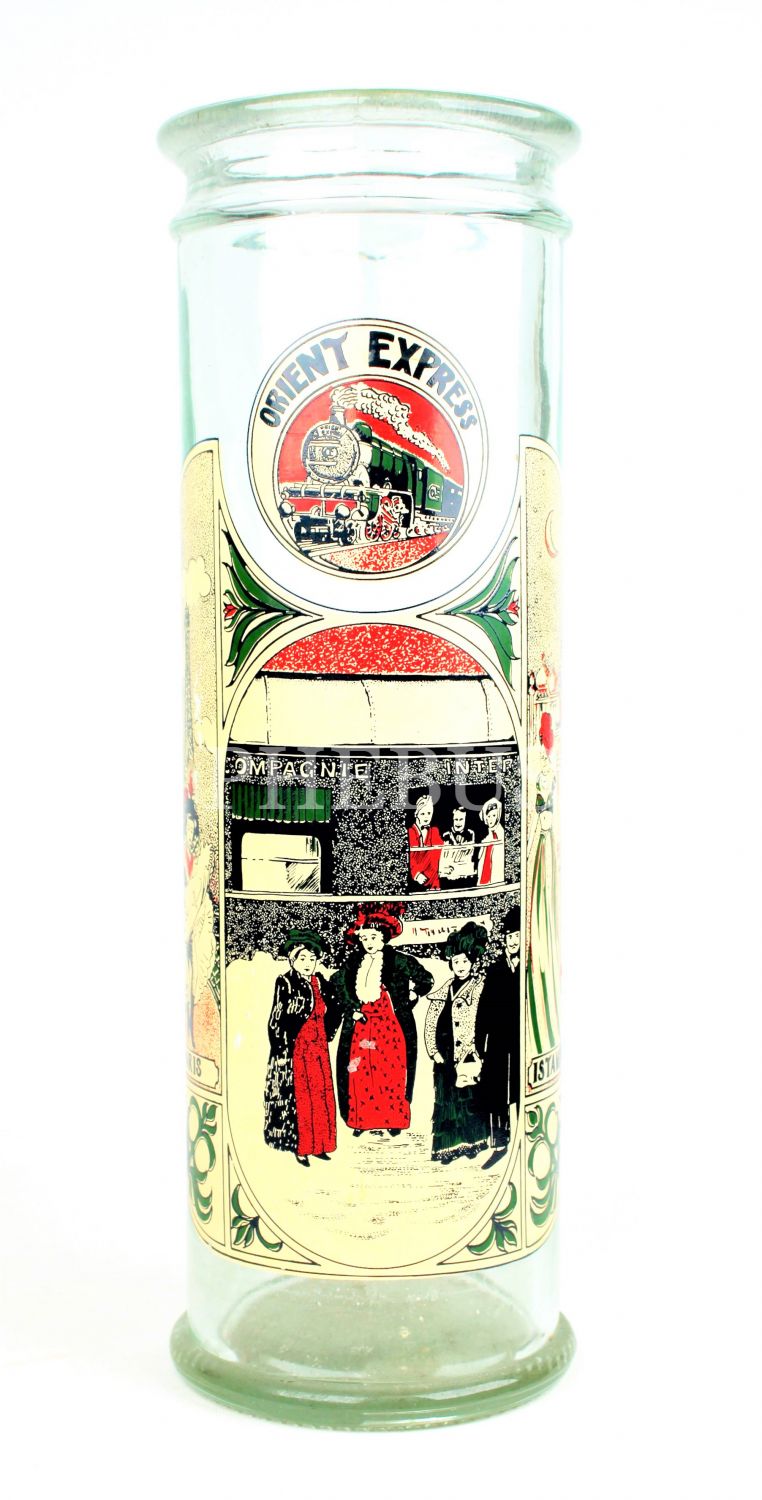 Orient Express Paris-İstanbul hattı büyük boy cam makarna kavanozu, 1930lar
