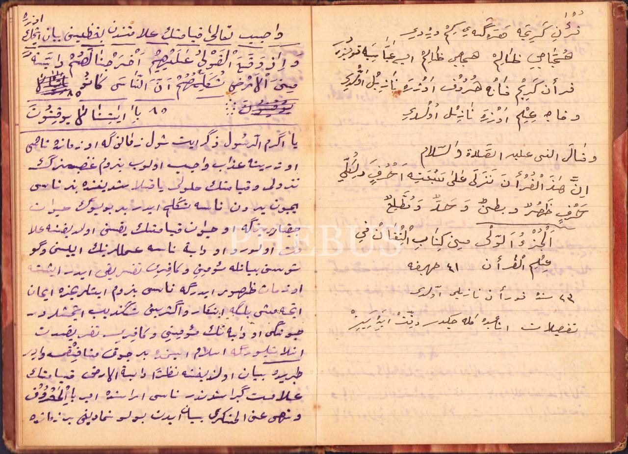 Defterde Firavun kıssası ve ayetler gibi dini içerik yer almaktadır.