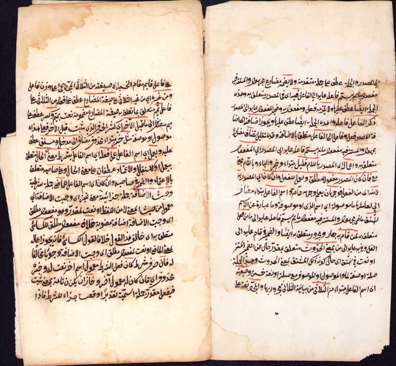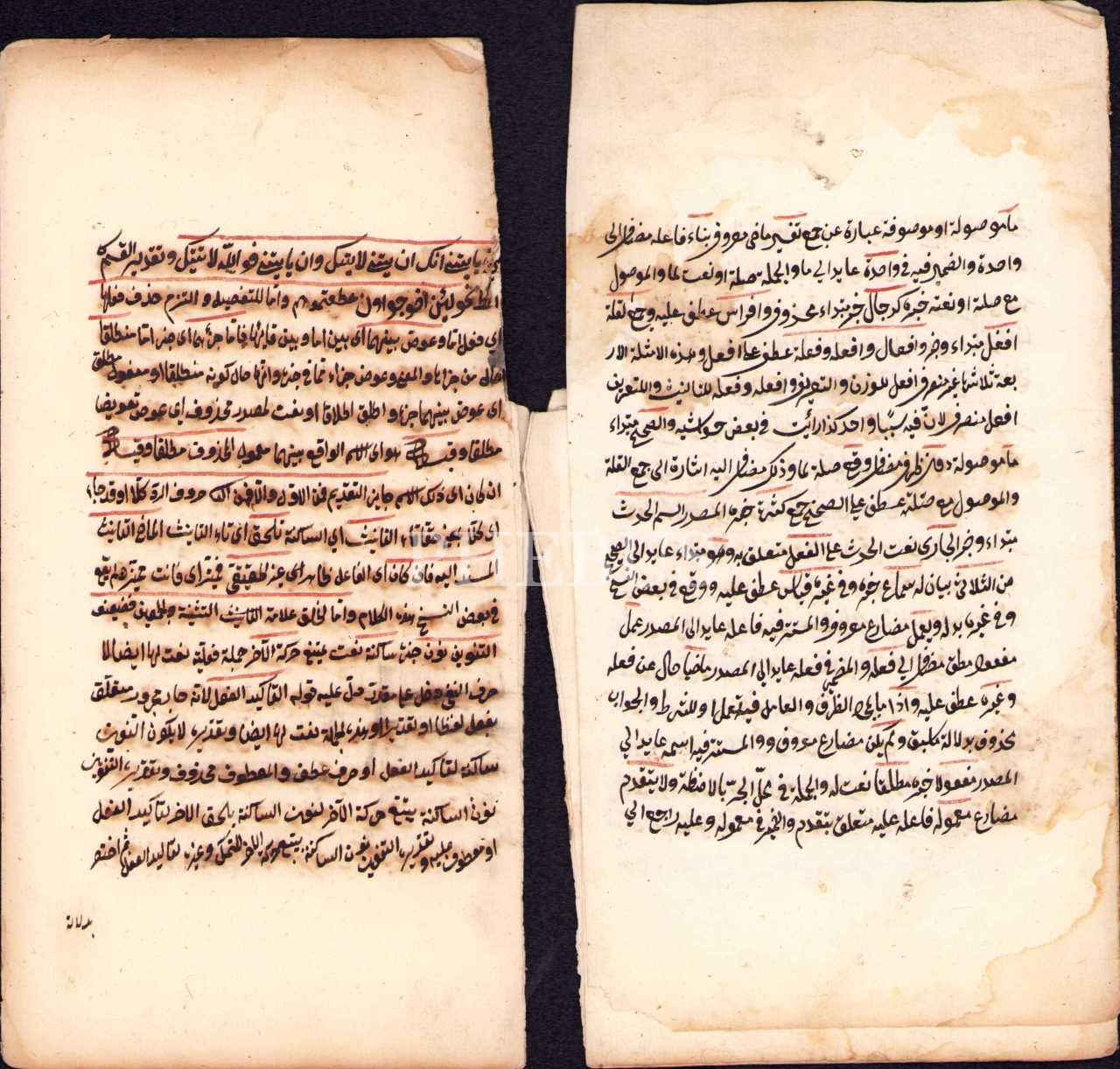 Arapça Dilbilgisi Yazması, 14 varak, 11x22 cm, sayfalar ayrık ve sol üst köşeden kesilmiş haliyle, baştan ve sondan eksik