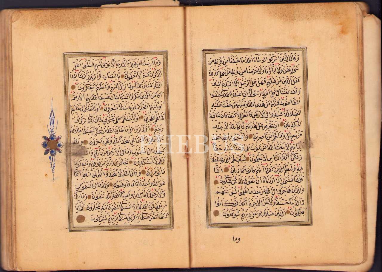 Yazma Kur'ân-ı Kerîm [Mâide Sûresi'nin son sayfalarından itibaren], Mustafa el-Vehbi ketebeli ve 1268 tarihli, 12x17 cm