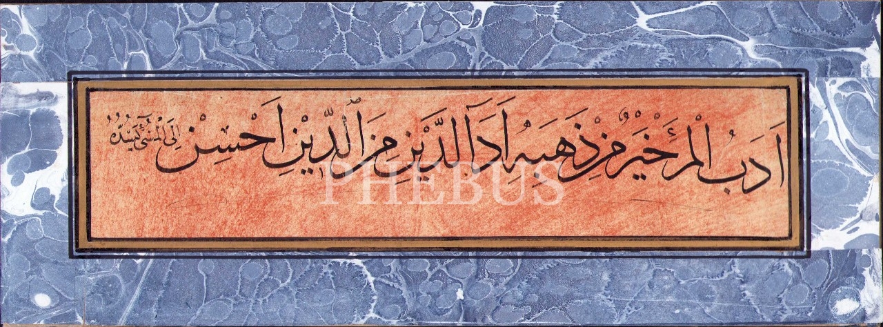 Erken Dönem Hoca İşi Sülüs Satır, ebrulu, 29x11 cm