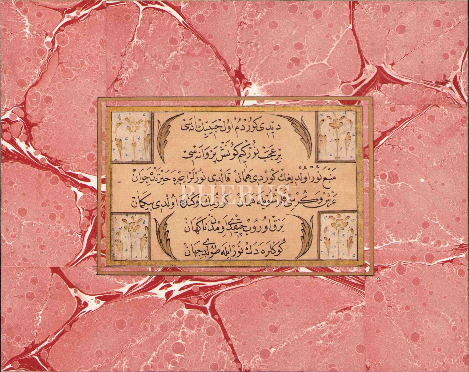 Nesih Yazı Mevlid-i Şerif'ten Beyitler, tezhip ve ebrulu, 20x17 cm