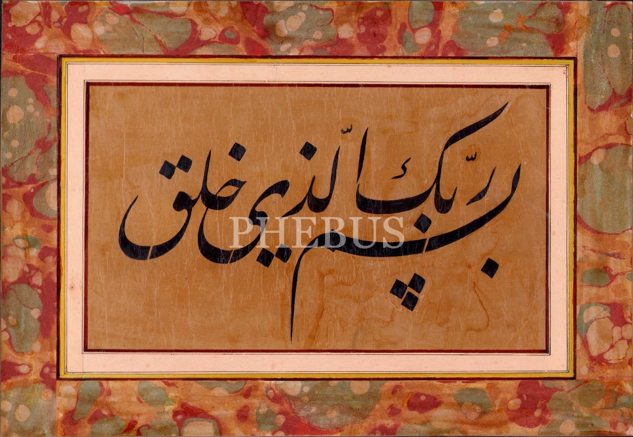 Celî Ta'lik Yazı "Bismi Rabbikellezî Halak", ebrulu, 34x24 cm