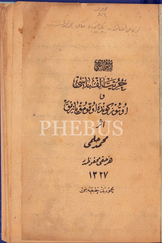 Osmanlı Hürriyet Elifbâsı ve Otuz Günde Okumak Yazmak, Mehmed Hilmi, Mahmud Bey Matbaası, 1327, 54 s., 15x24 cm