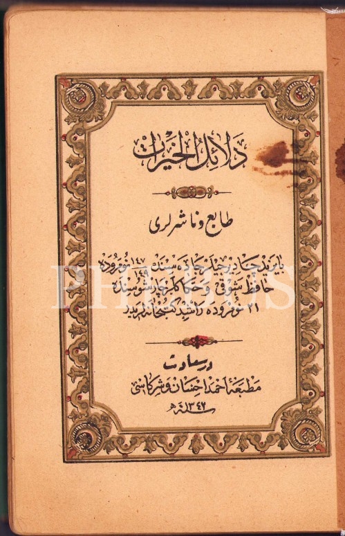 Delâilü'l-Hayrât, Hacı Süleymanzâde Mehmed Ali el-Vasıf ketebeli, tezhipli, Ahmed İhsan ve Şürekası Matbaası, Dersaadet [İstanbul] 1342, 12x18 cm, sırtı ayrık