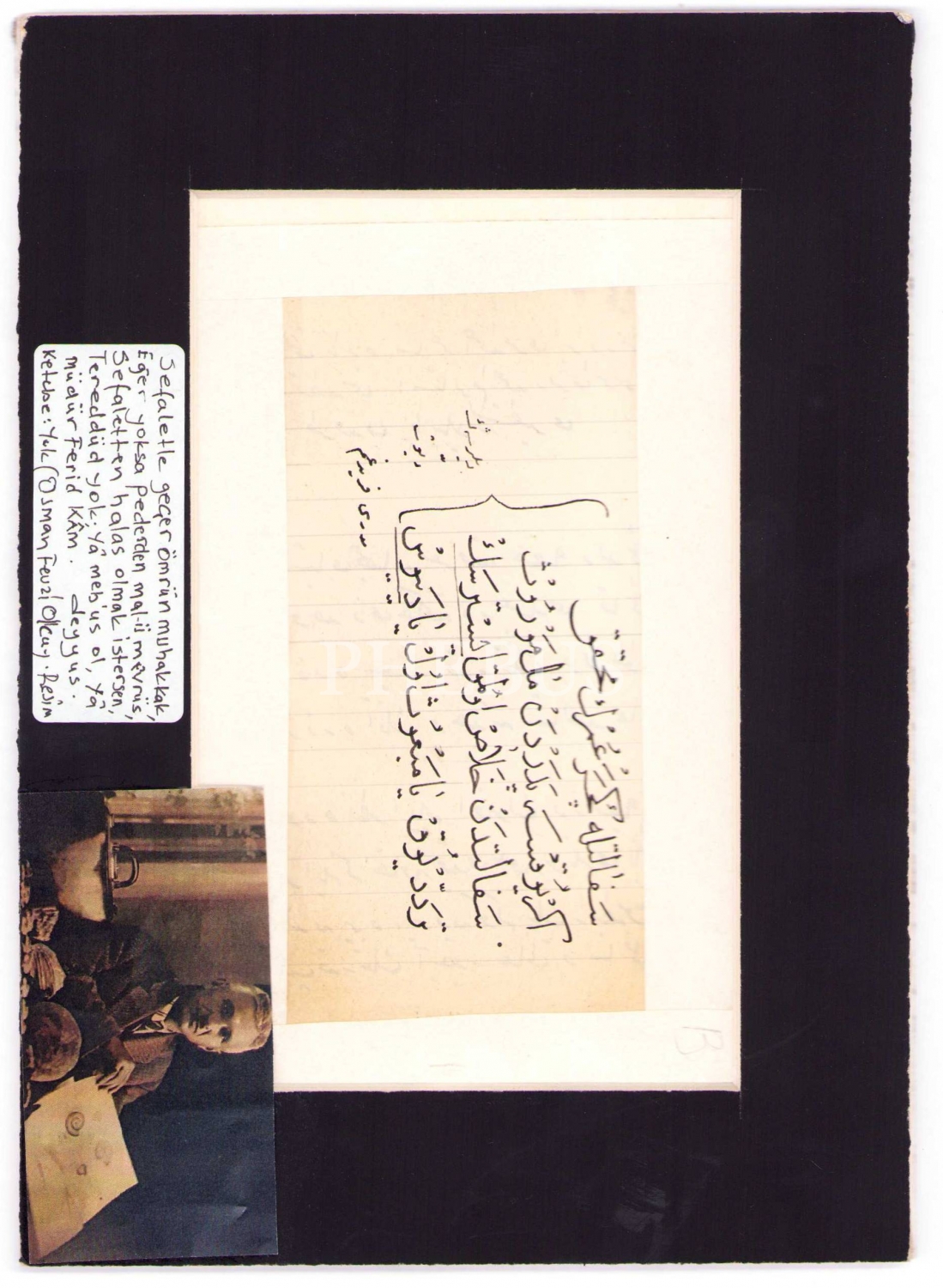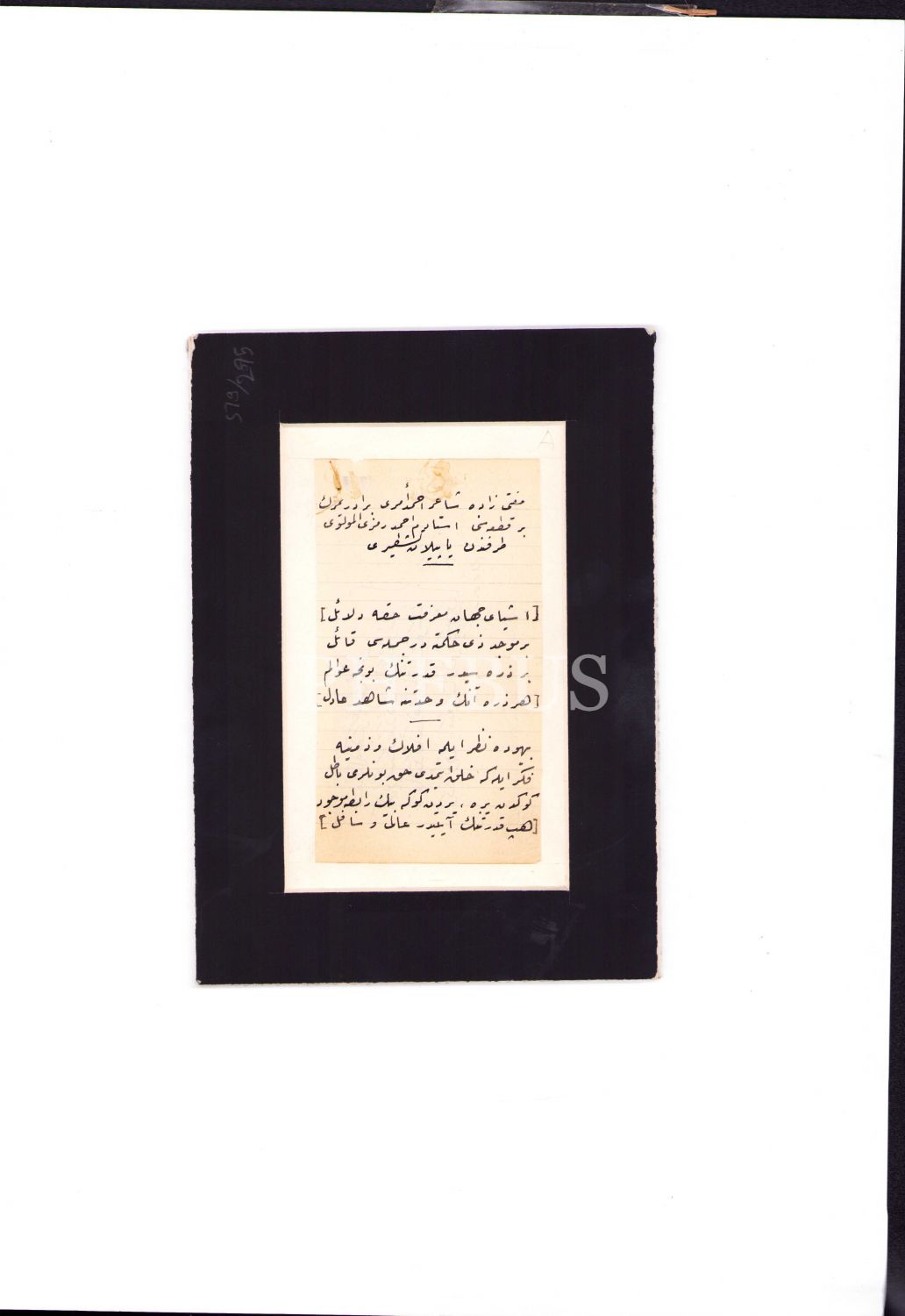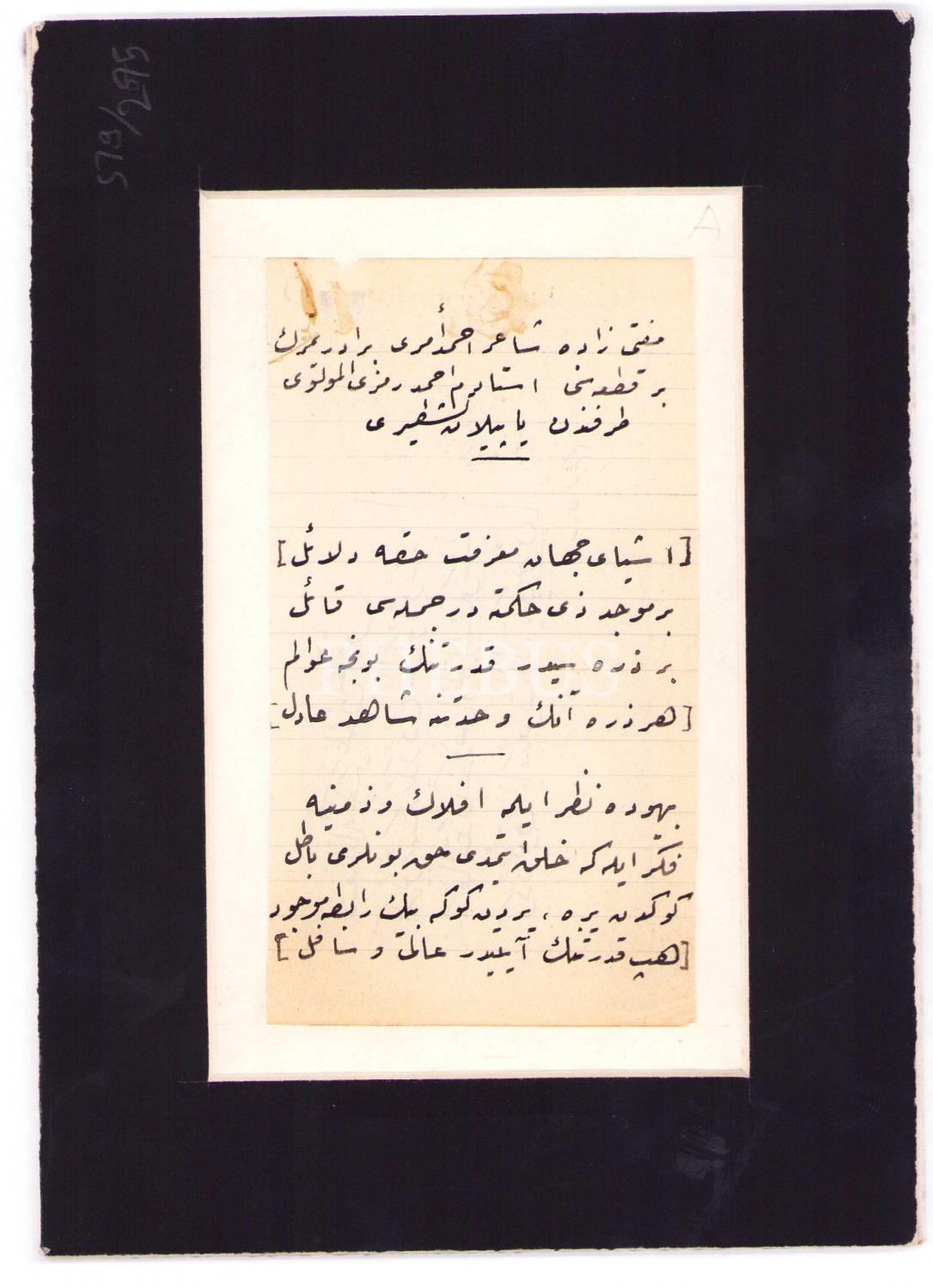 Osmanlıca Nesih Dörtlük,fotoğraflı, arkasında rik'a yazı mevcut, 9x15 cm