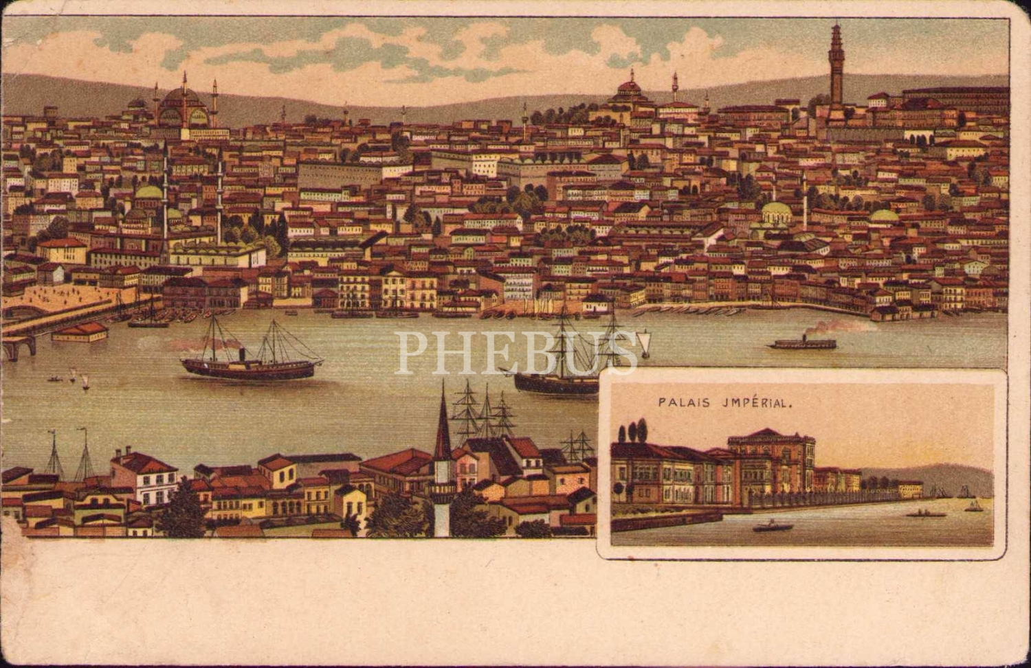 Osmanlı Dönemi Kartpostal, "Palais Imperial", Târihi Yarımada Haliç ve Dolmabahçe Sarayı görselli