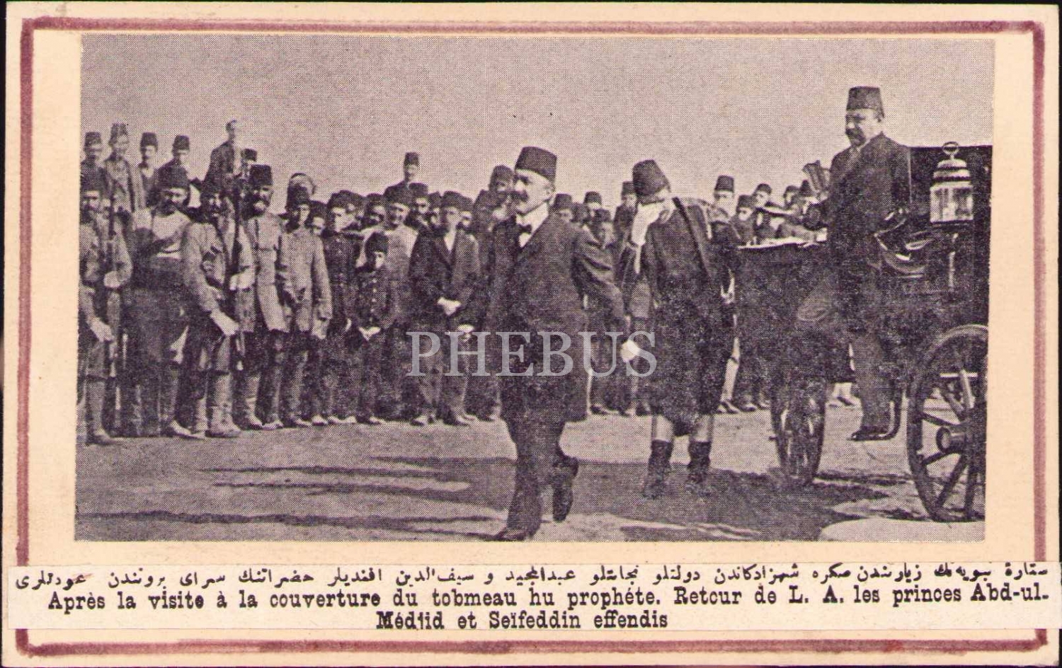Halife Abdülmecid ve Seyfeddin Efendi'nin Saraydan Ayrılışları, Osmanlıca ve Fransızca açıklamalı, karta yapıştırılmış vaziyette