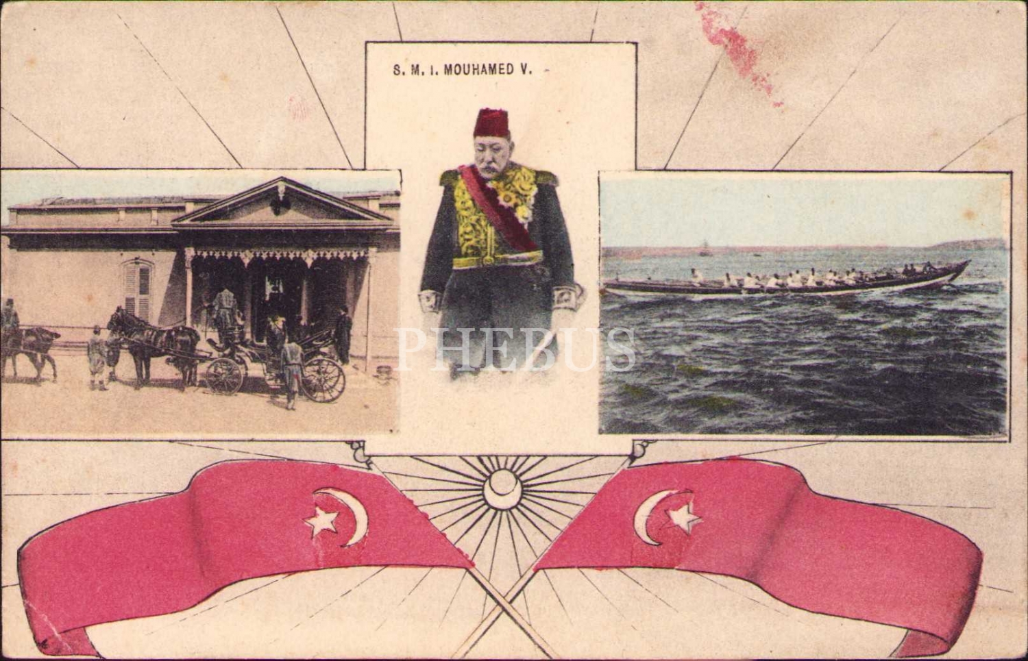 Osmanlı Dönemi Kartpostal, Sultan Mehmed Reşad, İtalya Baskı, Türk bayraklı
