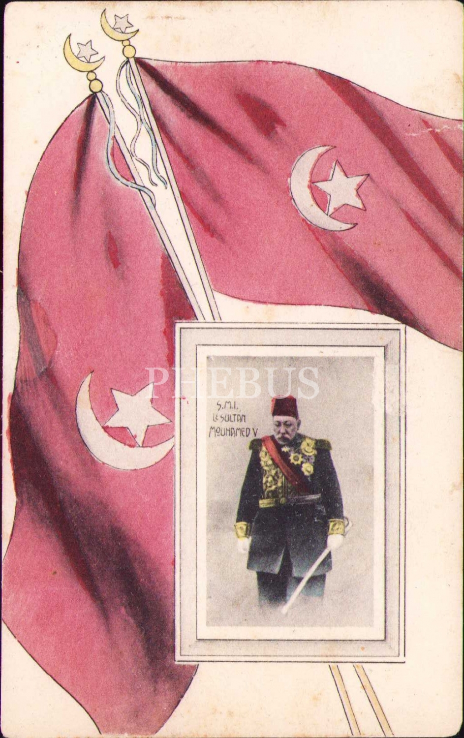 Osmanlı Dönemi Kartpostal, Sultan Mehmed Reşad, İtalya Baskı, Türk bayraklı