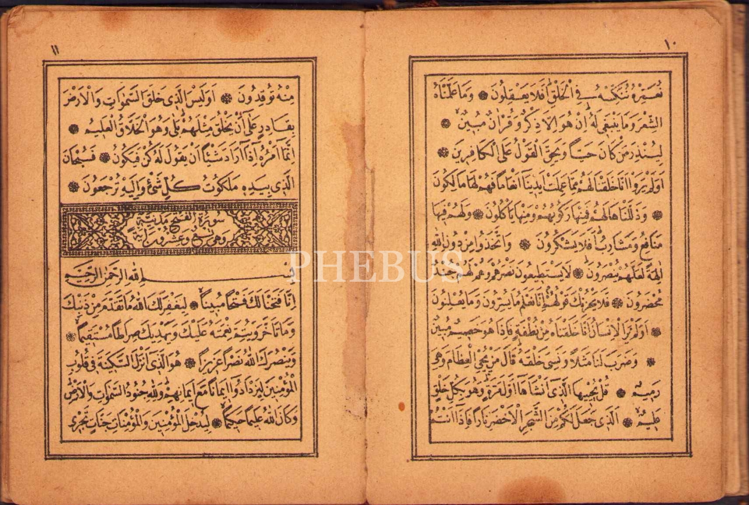 Çanakkale Savaşı'nda Enver Paşa tarafından orduya dağıtılan, kapağında "1332-1333 Muharebesi [Çanakkale Savaşı]" yazılı Yasin-i Şerif, Enver Paşa'dan Osmanlıca 'Gazi arkadaşlarıma' şeklinde baskı imzalı, Dönemin şahıs cildinde arka kapağı eksik 10x7 cm.