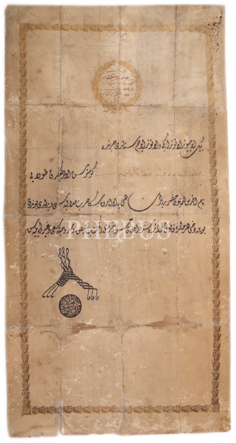 Birinci Cihan Harbi'nde Fevkalade Hizmet ve Gayretleri Dolayısıyla Harp Madalyası Beratı, Onbaşı Beşiktaşlı Kazım Oğlu Muharrem'e, Kafkas Kumandanı'ndan imzalı, Enver Paşa pençe mühürlü, 23x42 cm