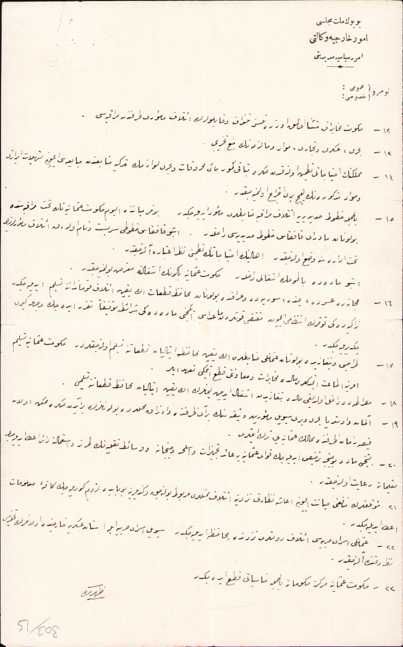 Osmanlıca Büyük Millet Meclisi Antetli "Mondros'da İmza Edilen Mütareke Şartları'nın Maddelendiği Belge, iki sayfa, 20x31 cm