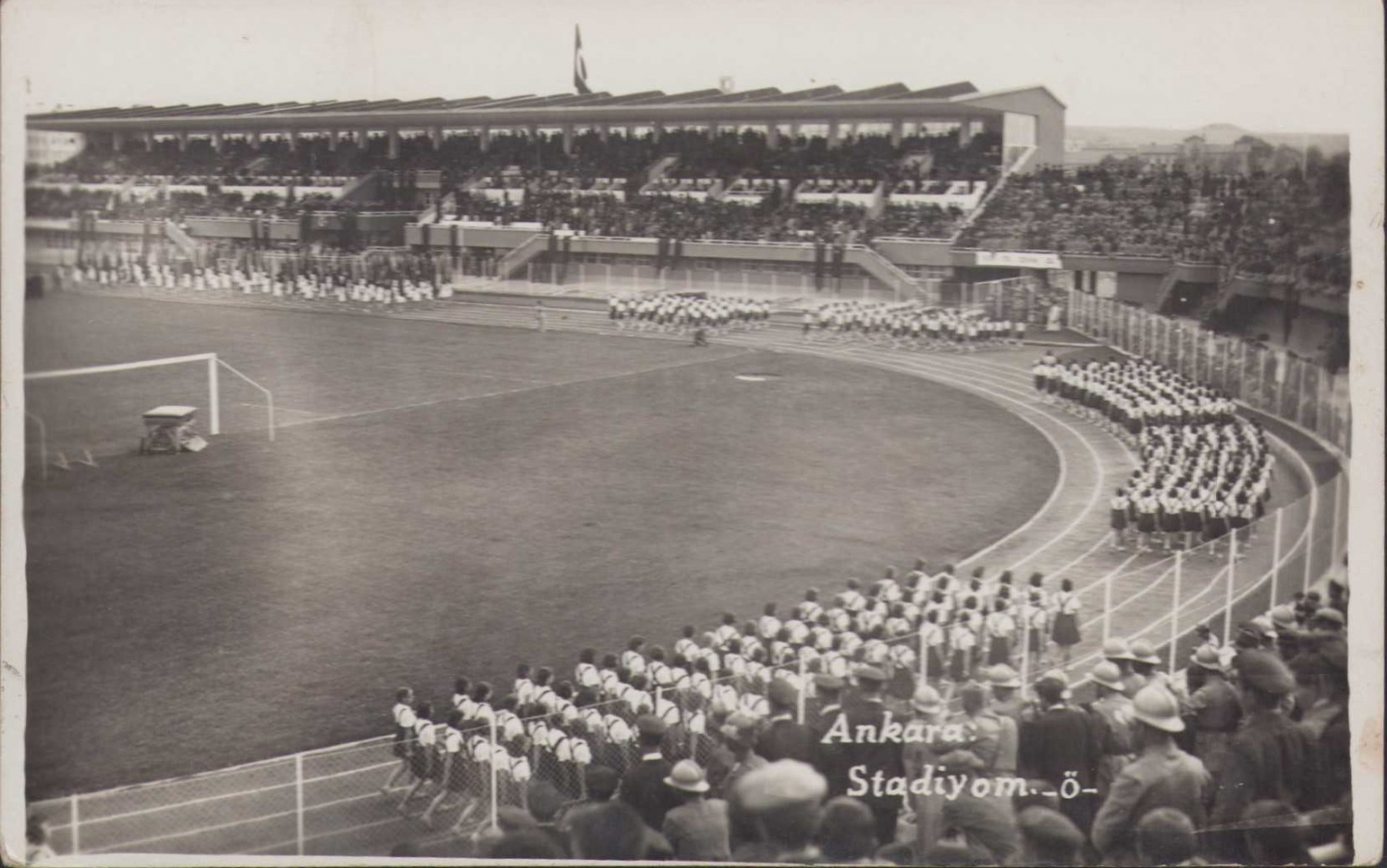 Ankara Stadyumunda bir tören geçişi, arkası ithaflı, 1939 tarihli, 14x9cm