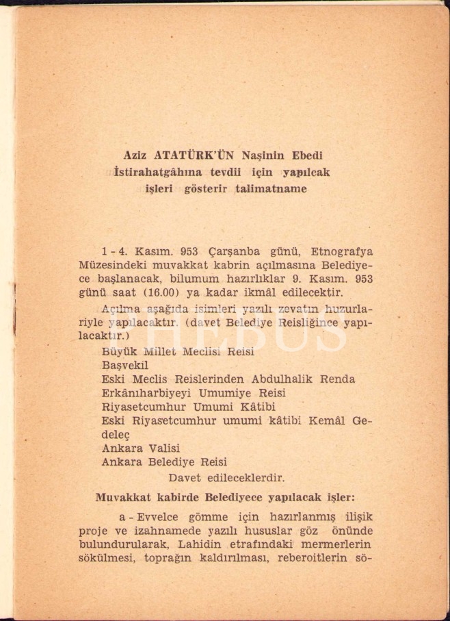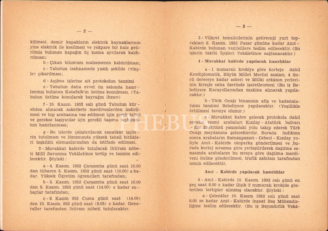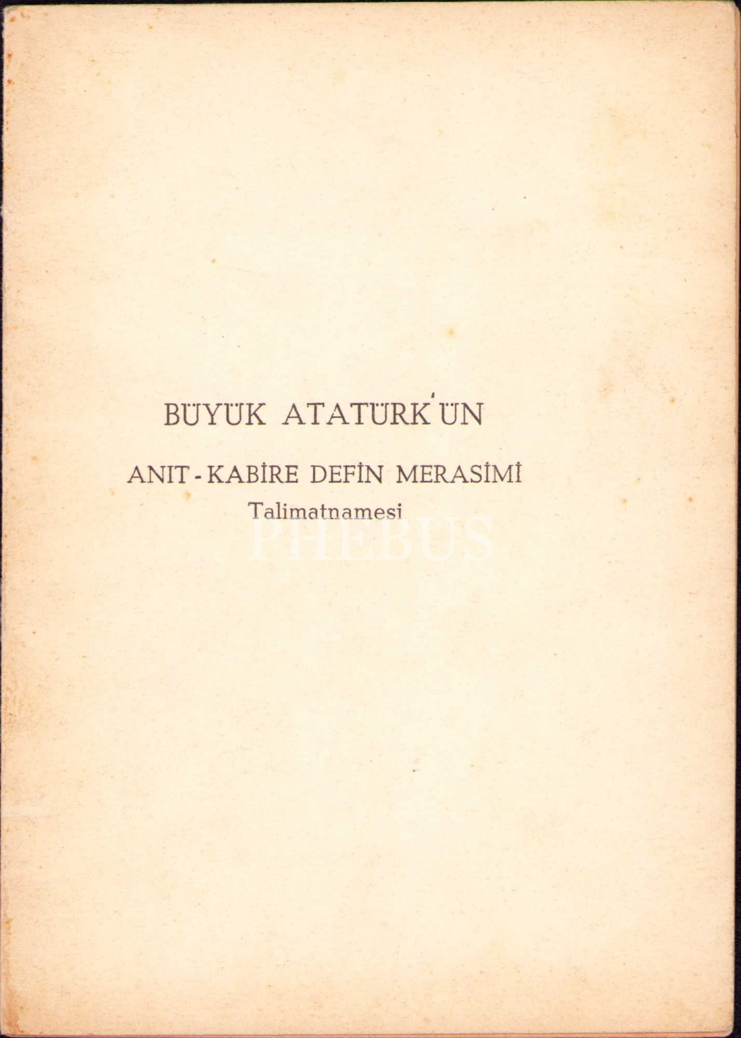 Büyük [Mustafa Kemal] Atatürk'ün Anıt Kabir'e Defin Merasimi Talimatnamesi, 8 sayfa, 12x17 cm