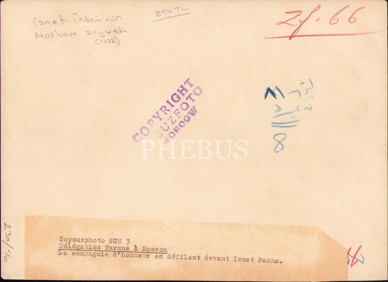 İsmet İnönü Rusya Ziyareti'nde Kızılordu'yu selamlıyor, Moskova damgalı, 24x18 cm