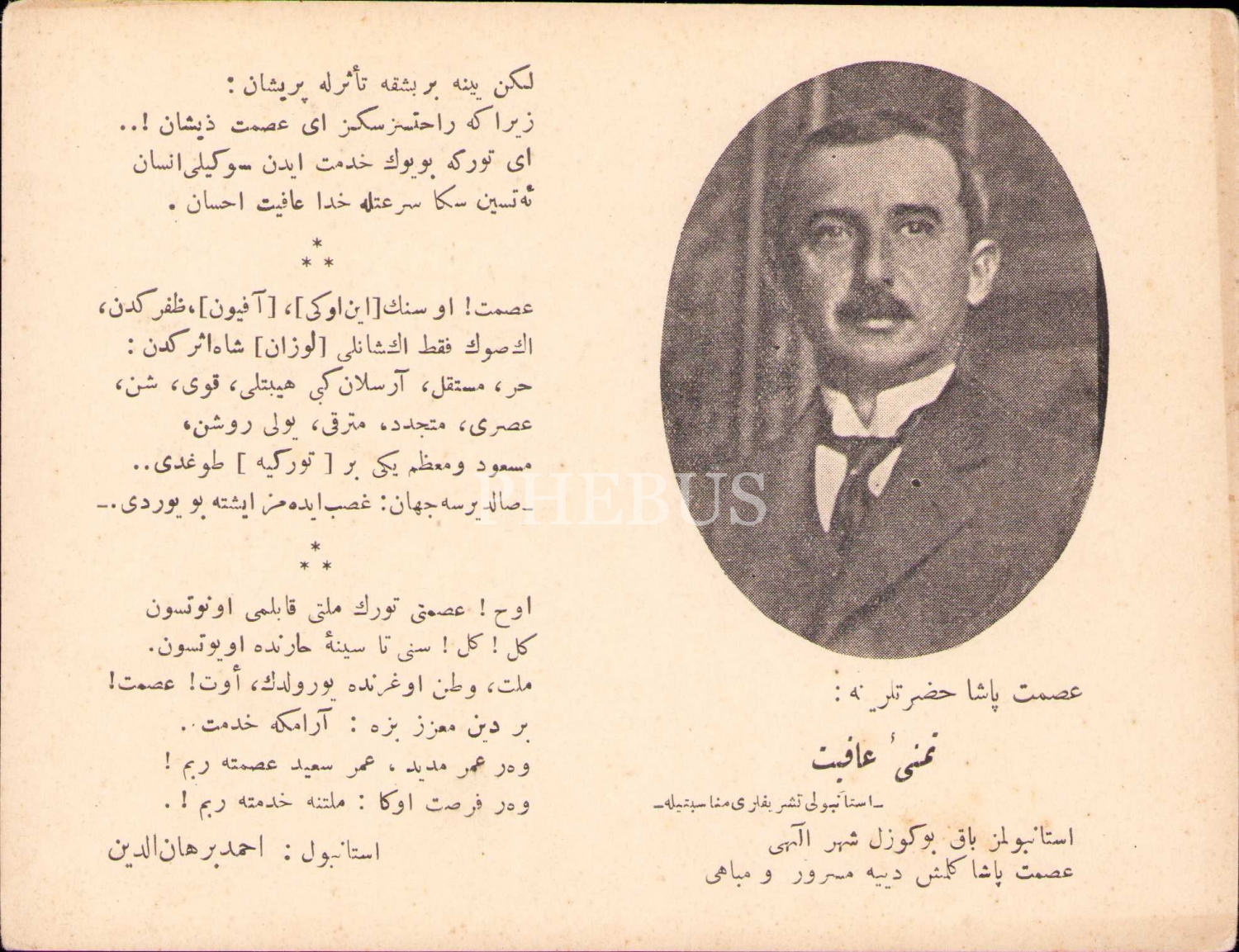 Şiir, "İstanbul'umuz bak bu güzel şehr-i ilâhî/ İsmet Paşa gelmiş diye mesrûr u mübâhi" şeklinde başlamaktadır.