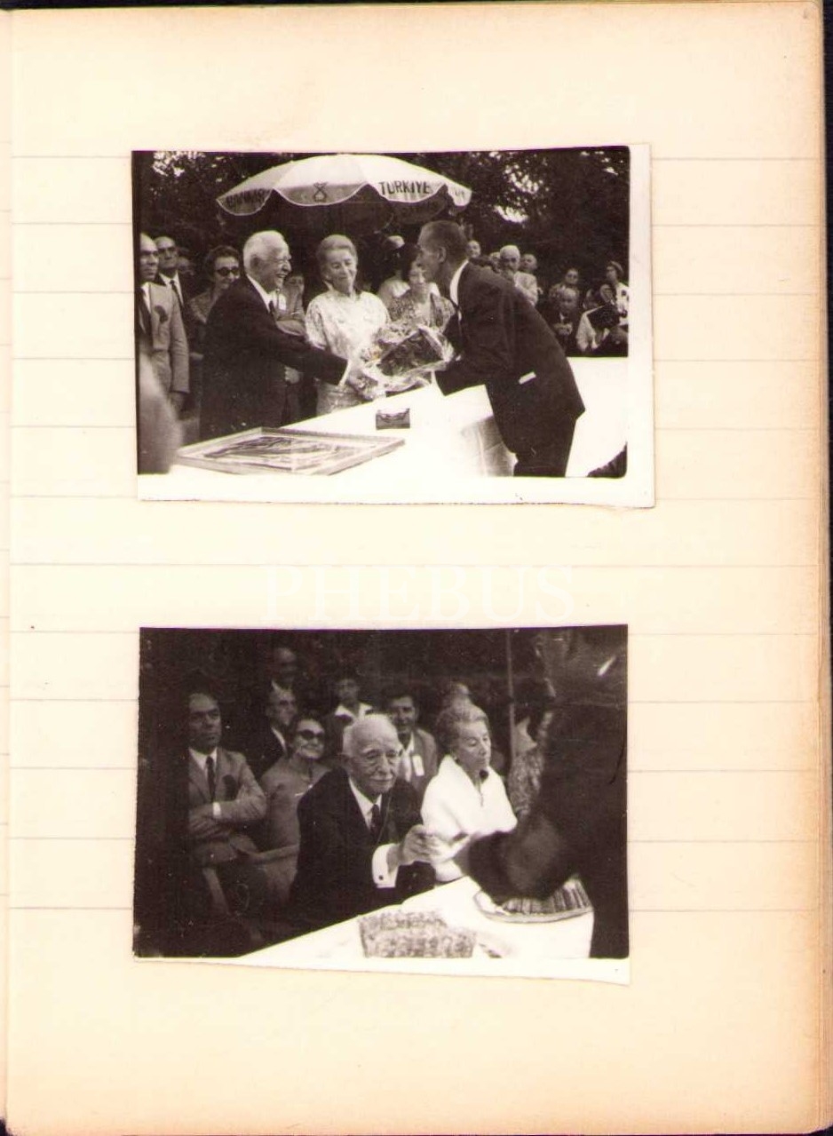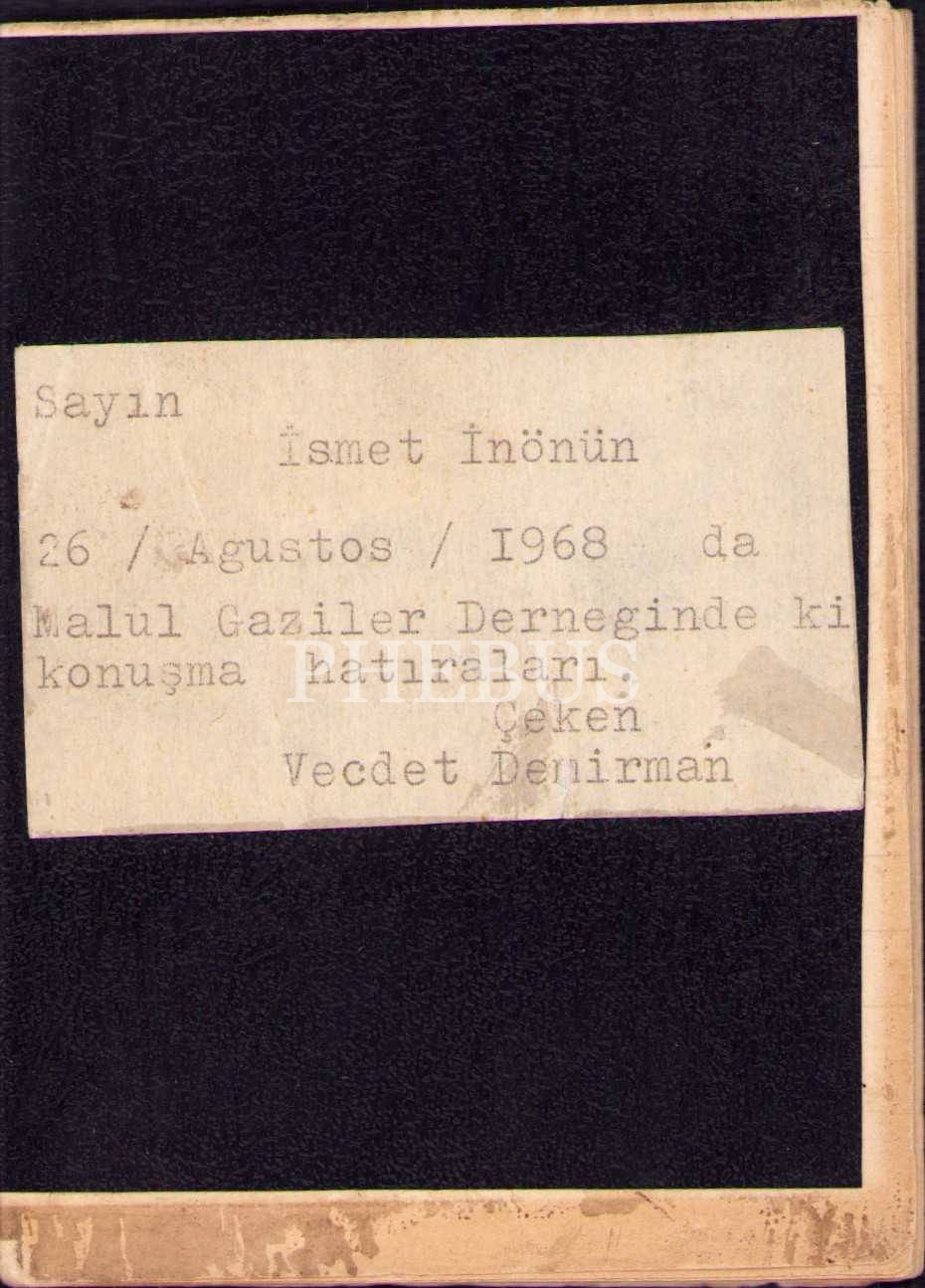 İsmet İnönü'nün 1968'de Malul Gaziler Derneği'nde Konuşma Yaparken Çekilmiş Fotoğrafları, küçük not defterine yağışrılmış şeklilde 12 fotoğraf, her biri 5x4 cm