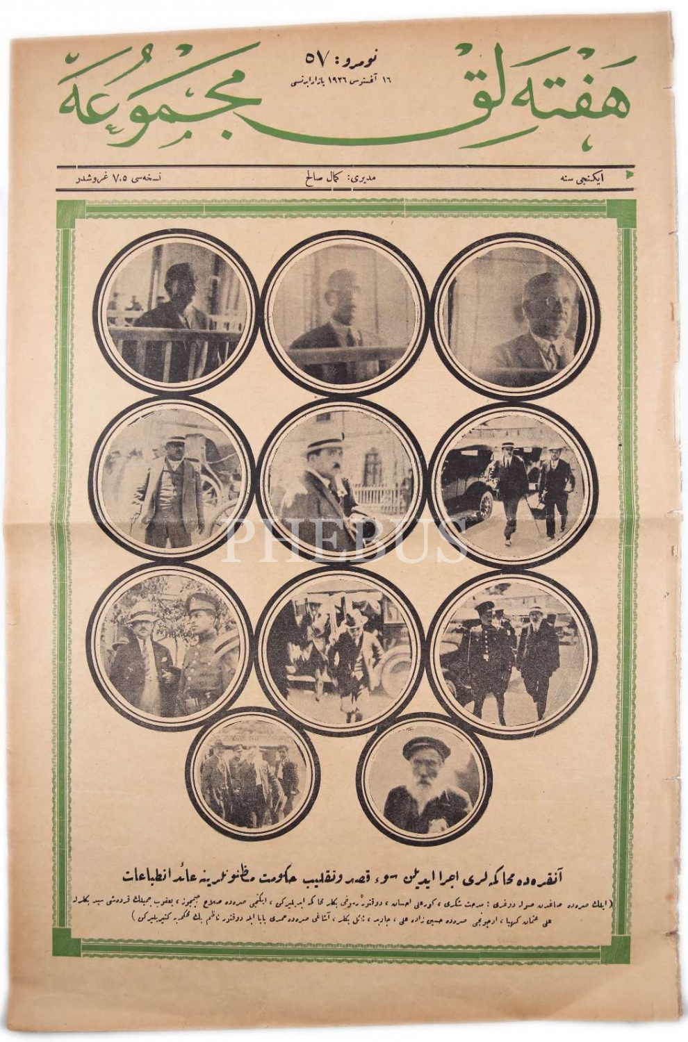 Osmanlıca haftalık Mecmua, İzmir Suikastı Sanıkları Kapaklı, 16 Ağustos 1926 tarihli, 8 sayfa, 31x45 cm