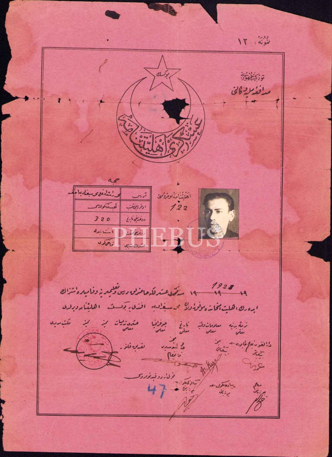 Osmanlıca Askerî Ehliyetname, 1928 tarihli, haliyle, 25x35 cm