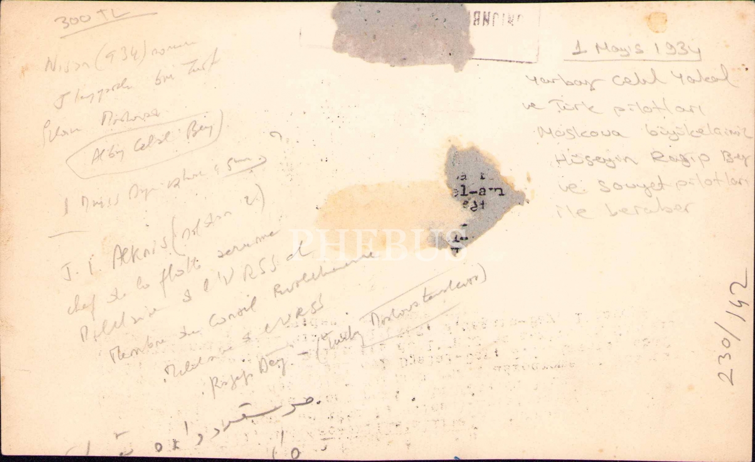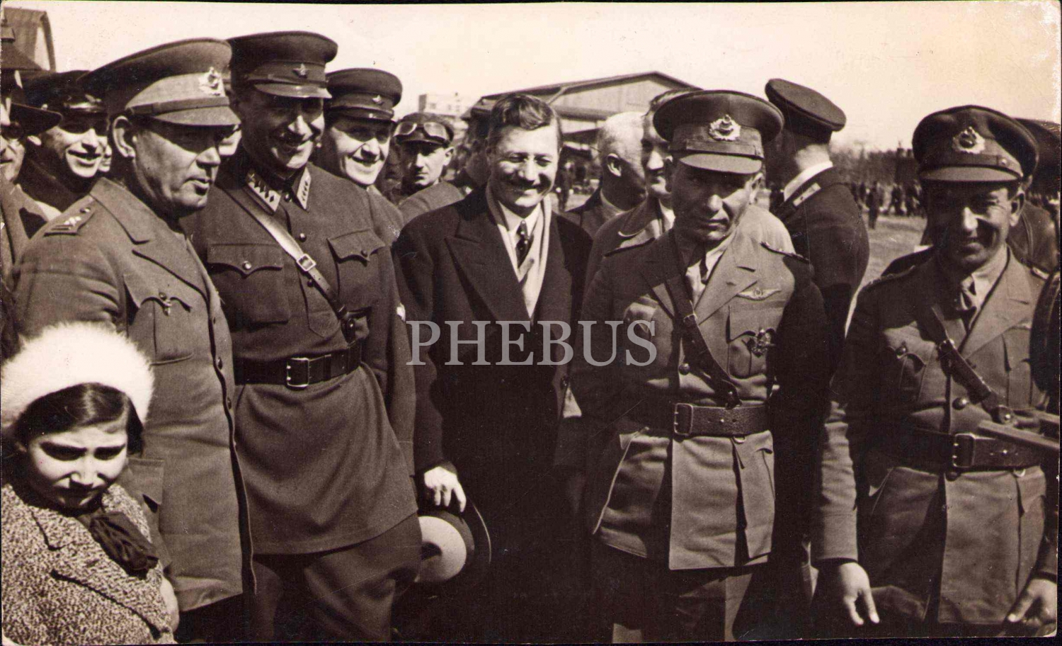 Yarbay Celal Yakal Komutasındaki Türk Pilotları 1 Mayıs Törenleri İçin Moskova'da General Budyanni ile birlikte, 20x14 cm