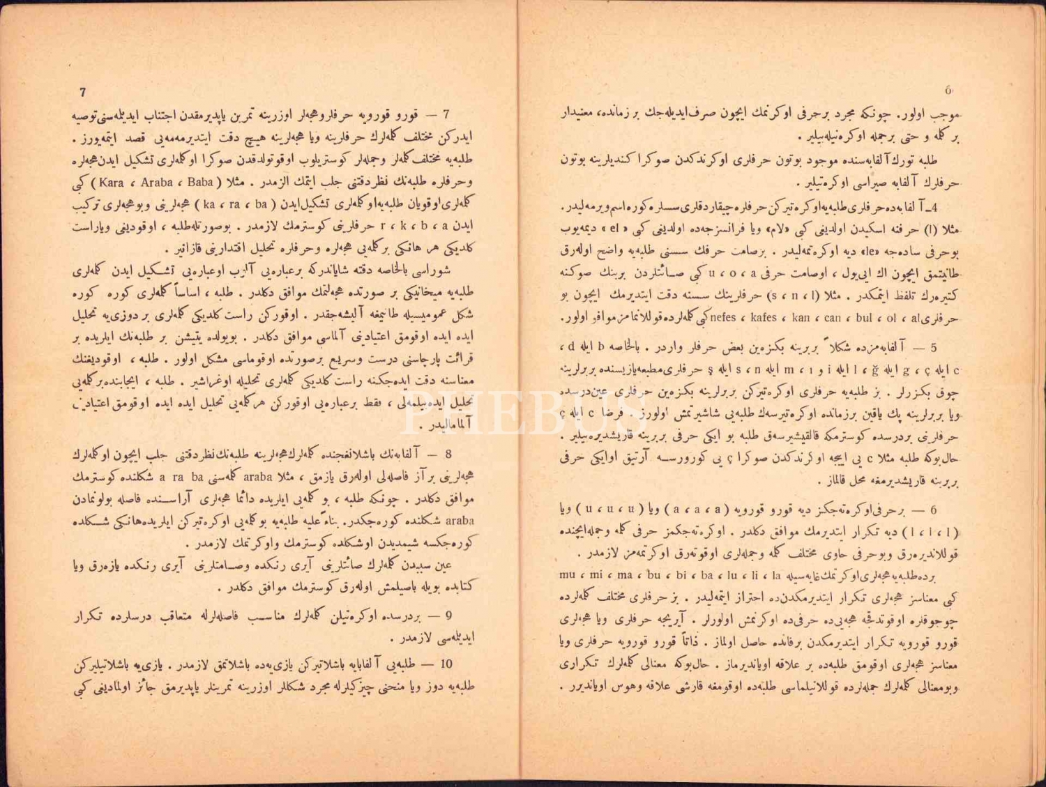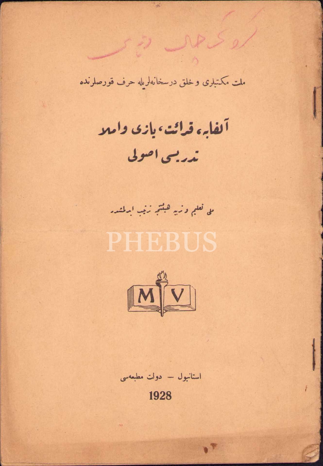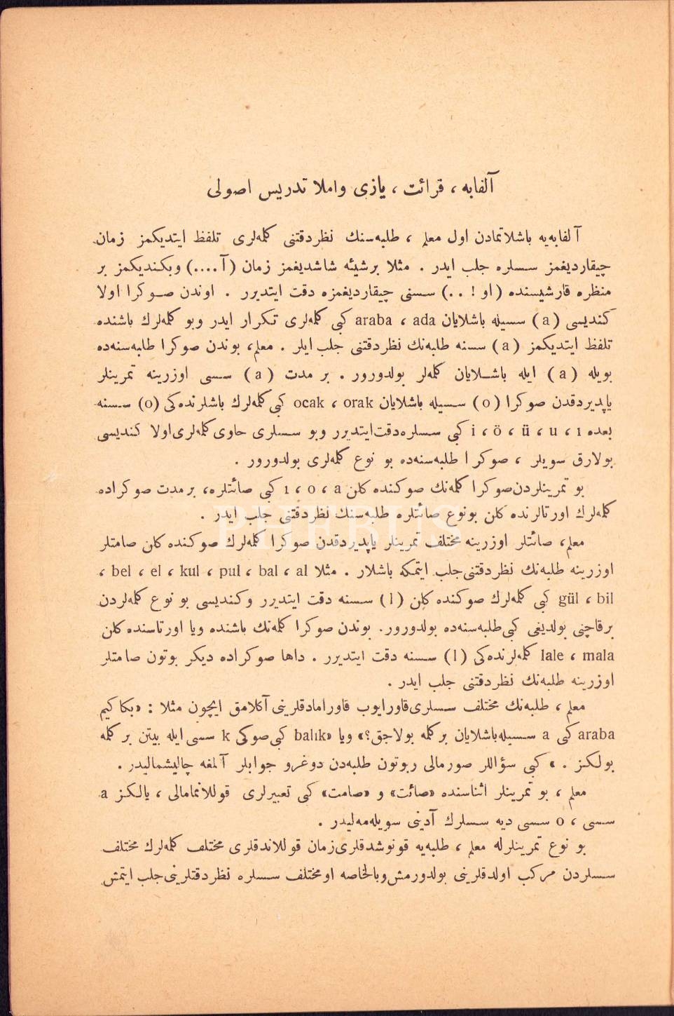 Osmanlıca Millet Mektepleri ve Halk Dershameleriyle Harf Kurslarında Alfabe Kıraat Yazı ve İmla Tedris Usulu, İstanbul, Devlet Matbaası, 1928, 21 sayfa, 17x24 cm