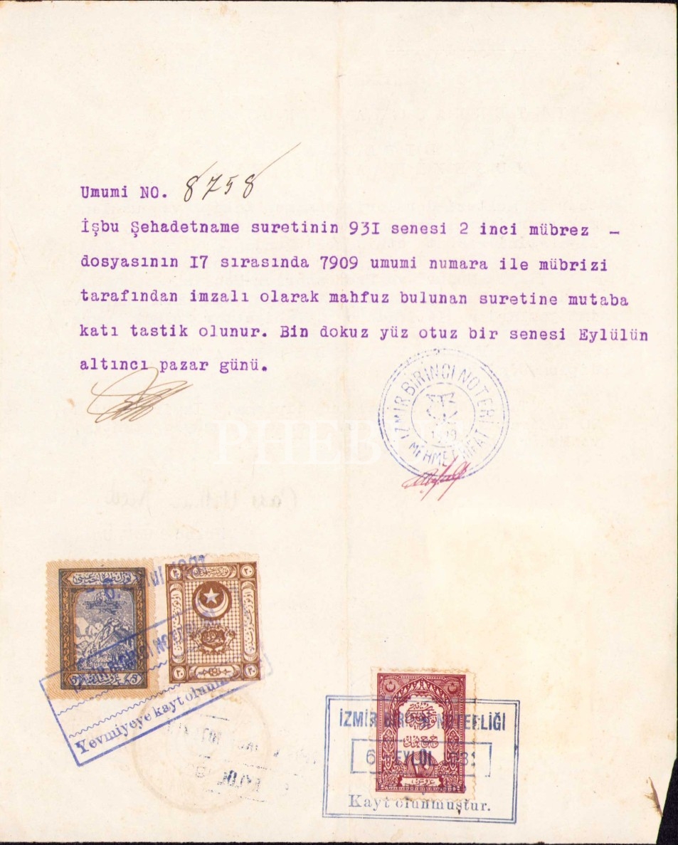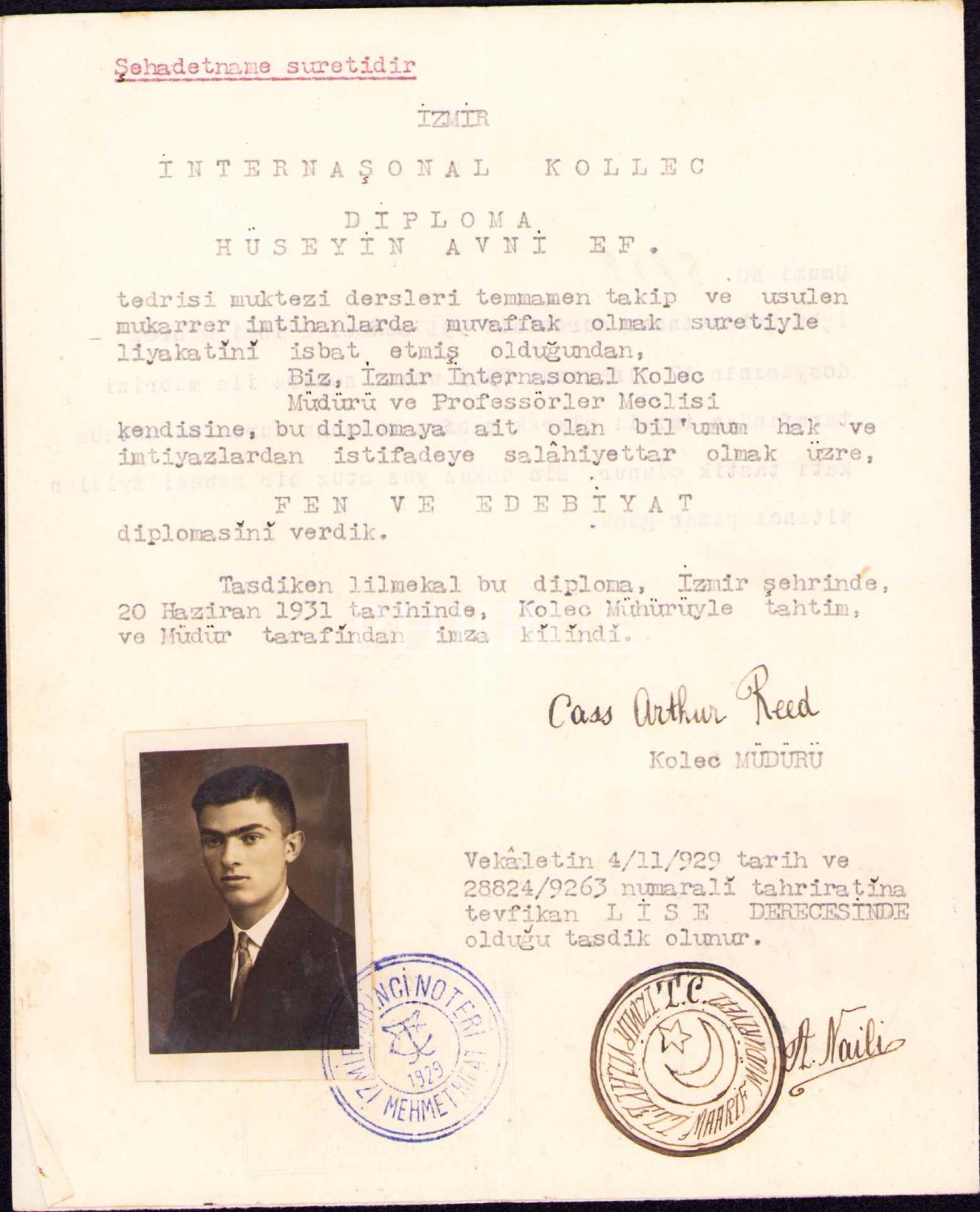 İzmir İnternasyonel Kolej Diploması, 1929 tarihli, 17x22 cm