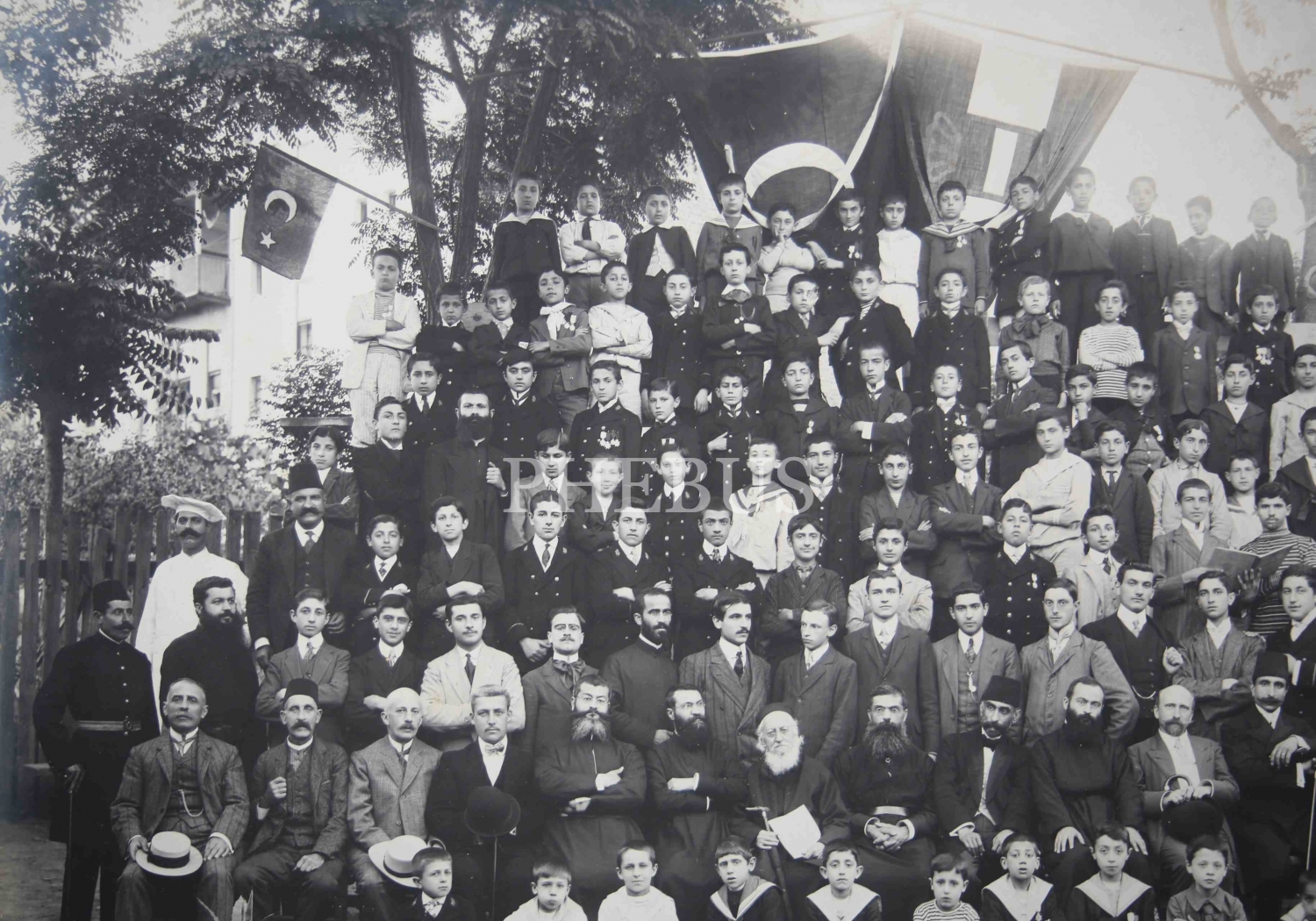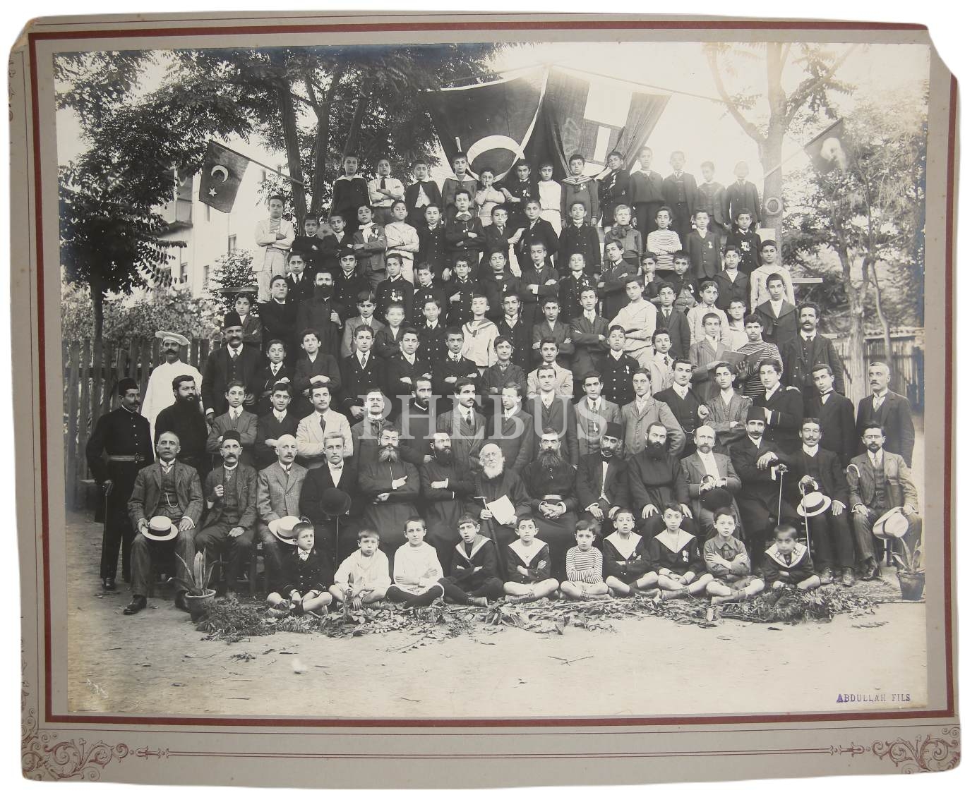 İstanbul'da Yabancı Okul Hoca ve Talebeleri, Abdullah Fils ıslak imzalı, Türk bayraklı, 40x30 cm