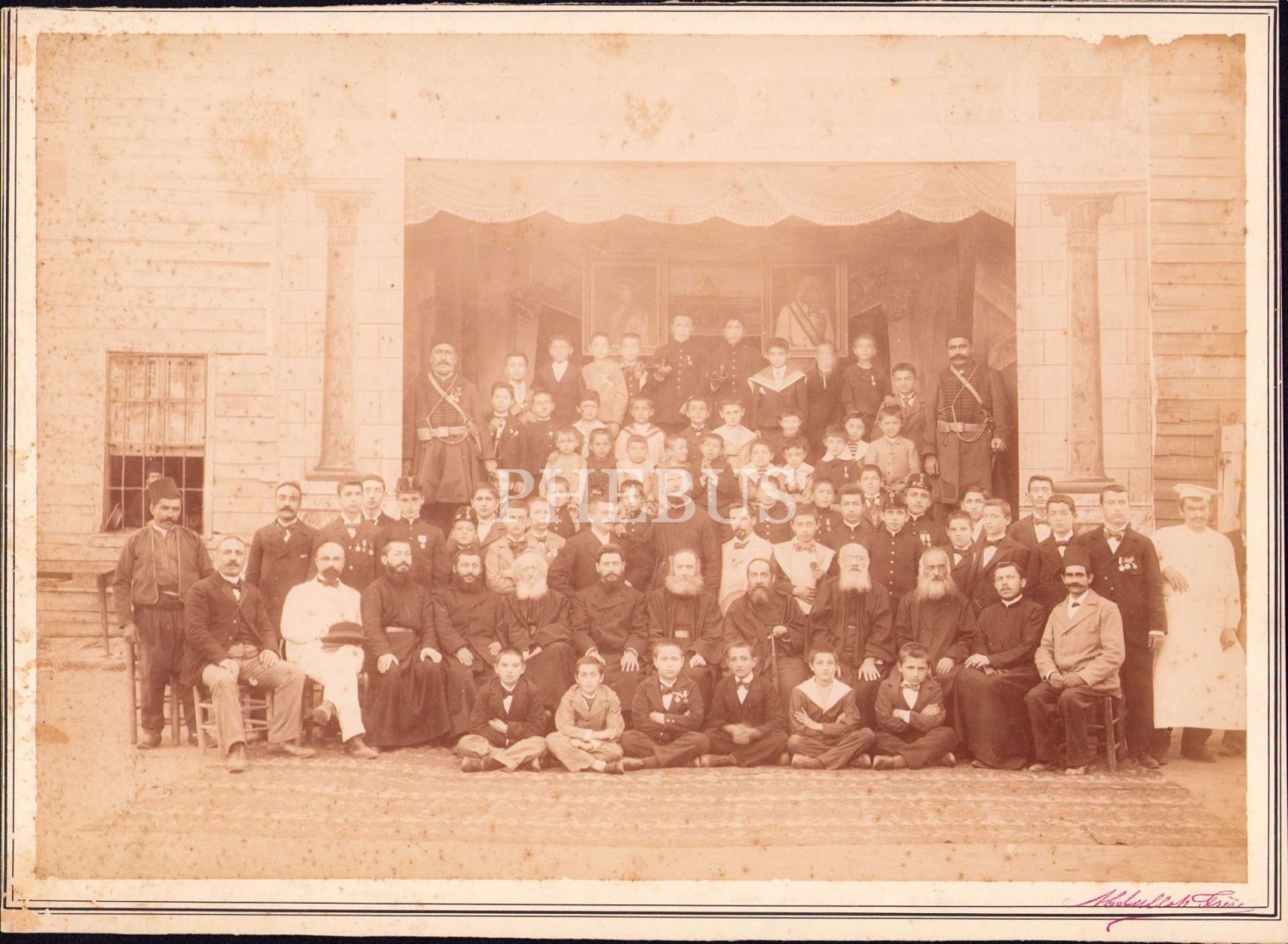 İstanbul'da Yabancı Okul Hoca ve Talebeleri, Abdullah Fils Islak İmzalı, Türk bayraklı, 40x30 cm