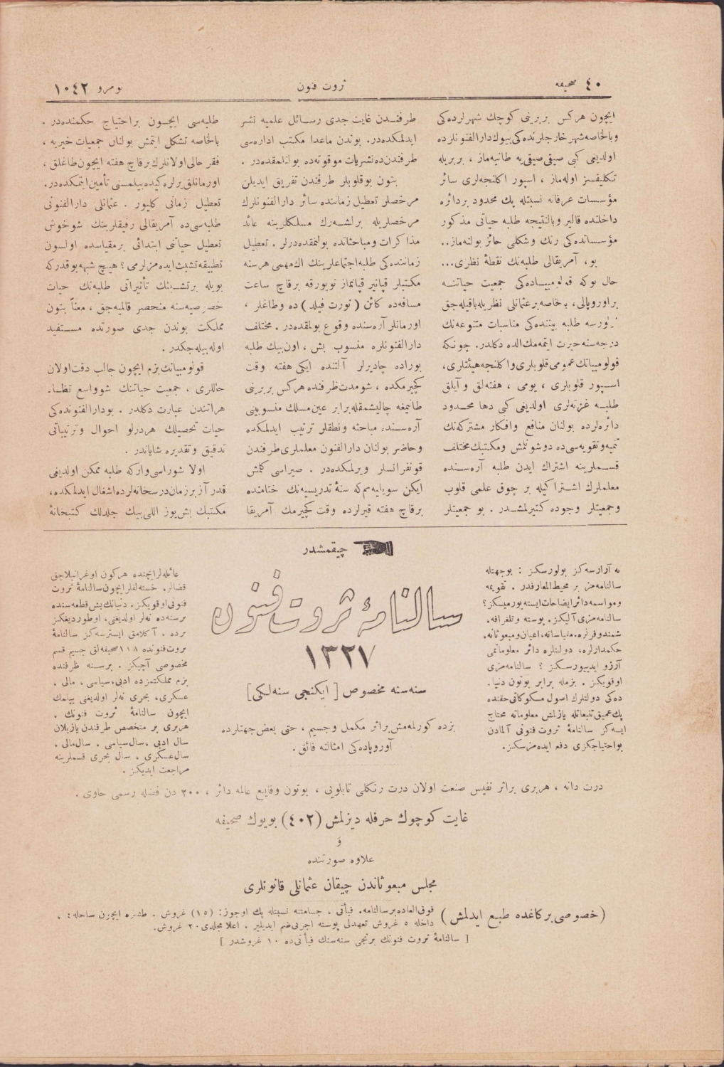 Serveti Fünun dergisi, Maison Baker - Pera kapaklı, 1328, Ahmet İhsan Şirketi ve Matbaası İstanbul, 18 sayfa, 25x35cm