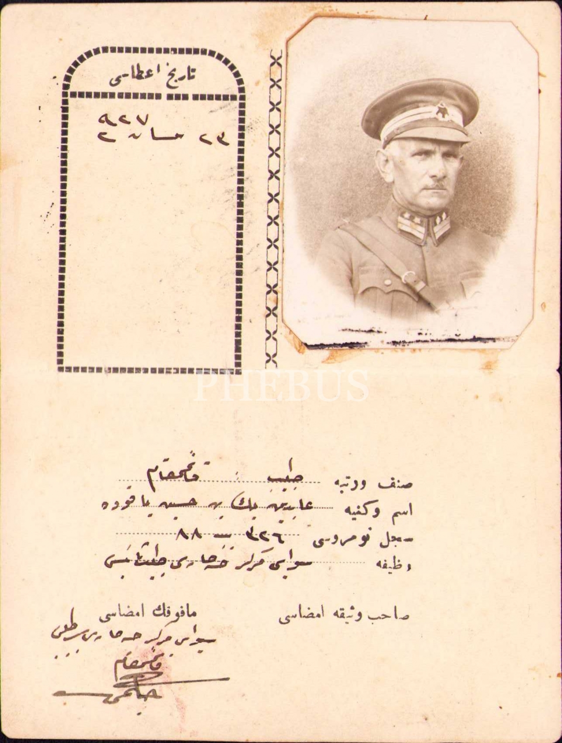 Osmanlıca Askeri Tabib [Doktor] Kimliği, Türkiye Cumhuriyeti Ordu Mensuplarına Mahsus Hüviyet Varakası, Süvari Merkez Hastahanesi'nden Hüseyin Bey'e Ait, 7x11 cm