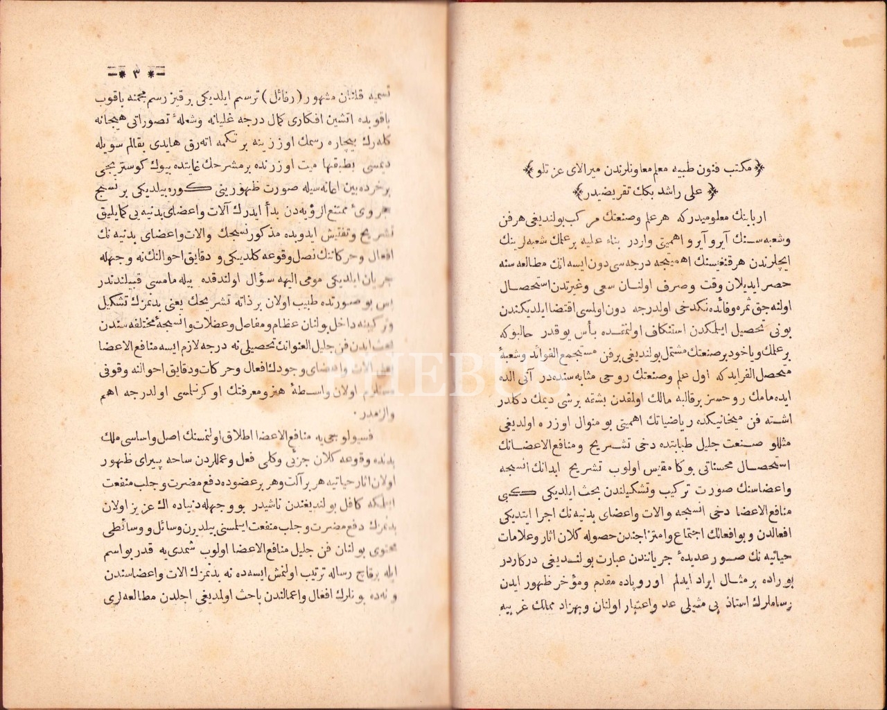 Osmanlıca, Mekteb-i Fünun-ı Tıbbiye Matbaası, Mehmed Nuri Efendi, 1290 tarihli, İki Cild, 14x22 cm