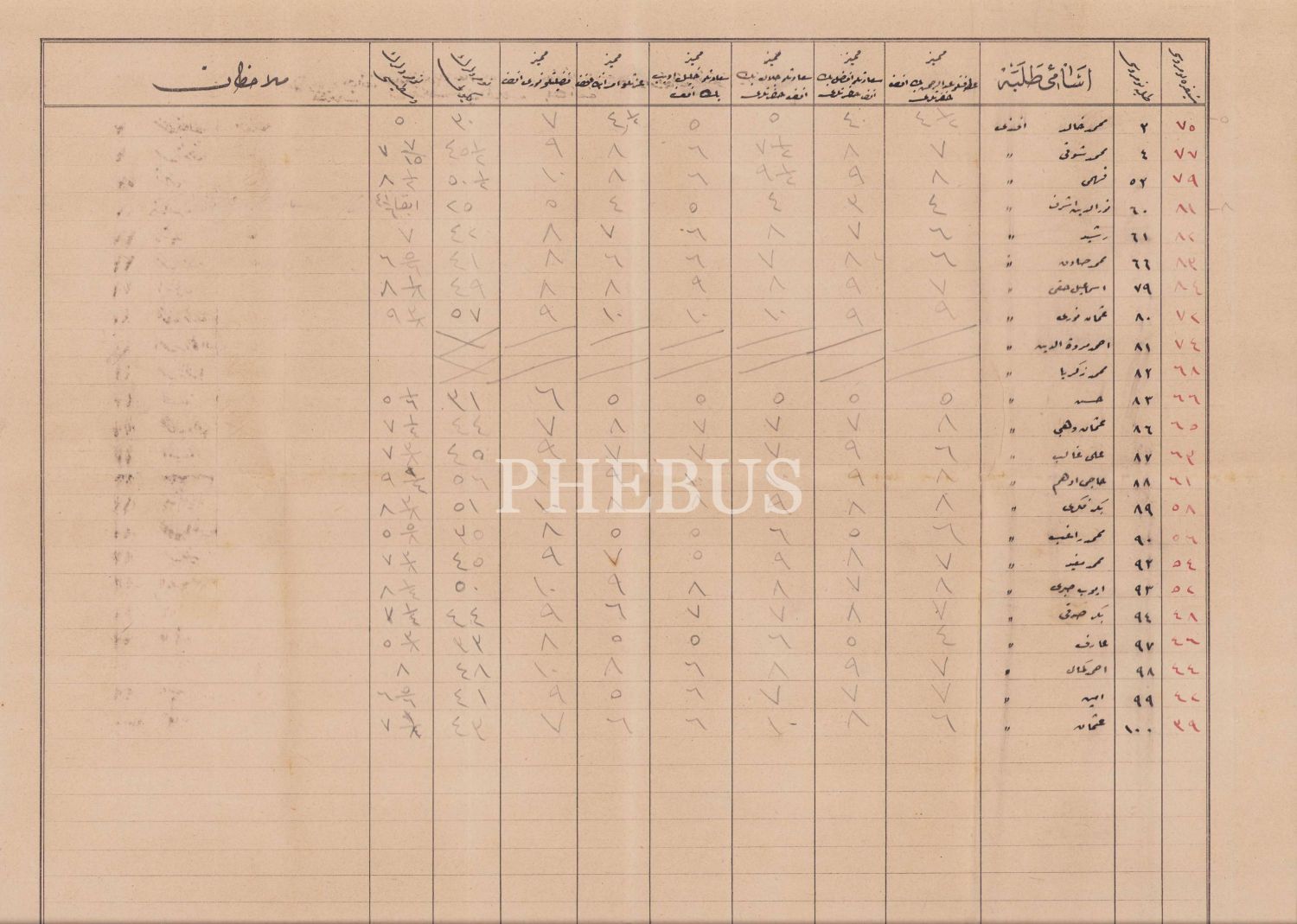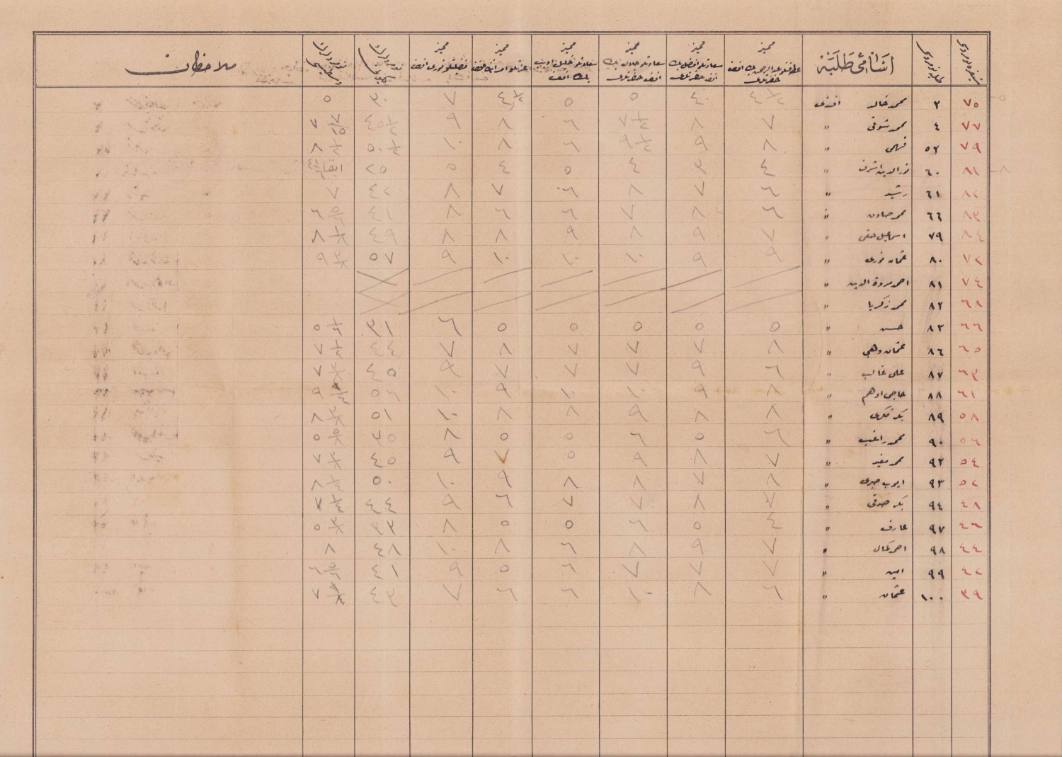 Osmanlı bir okula ait öğrencilerin not çizelgesi, 44x35cm