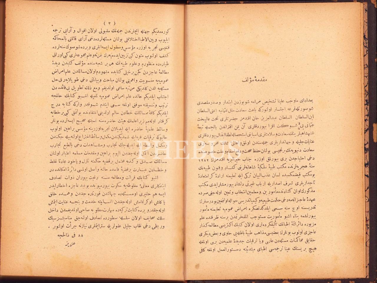 Osmanlıca İlm-i Emraz-ı Umumiye [Genel Hastalıklar], Eserin Müellifi: Kırımî Aziz Efendi, Mekteb-i Tıbbiye-yi Şahane Matbaası, 1307 tarihli, 573 sayfa, 16x23 cm