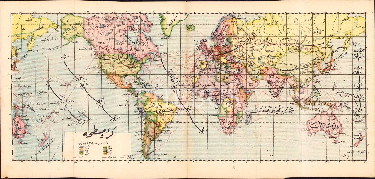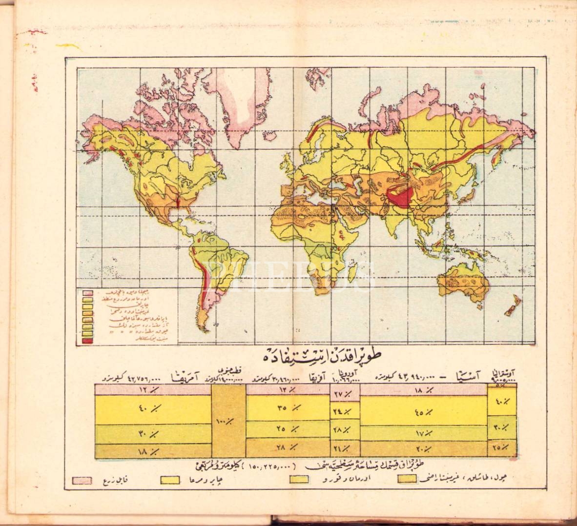 Osmanlıca Cumhuriyet Cihan Atlası, Otuz Altı Bafta, Maarif Kitaphanesi, İstanbul, 1925 tarihli, son sayfası ayrık vaziyette, 16x18 cm