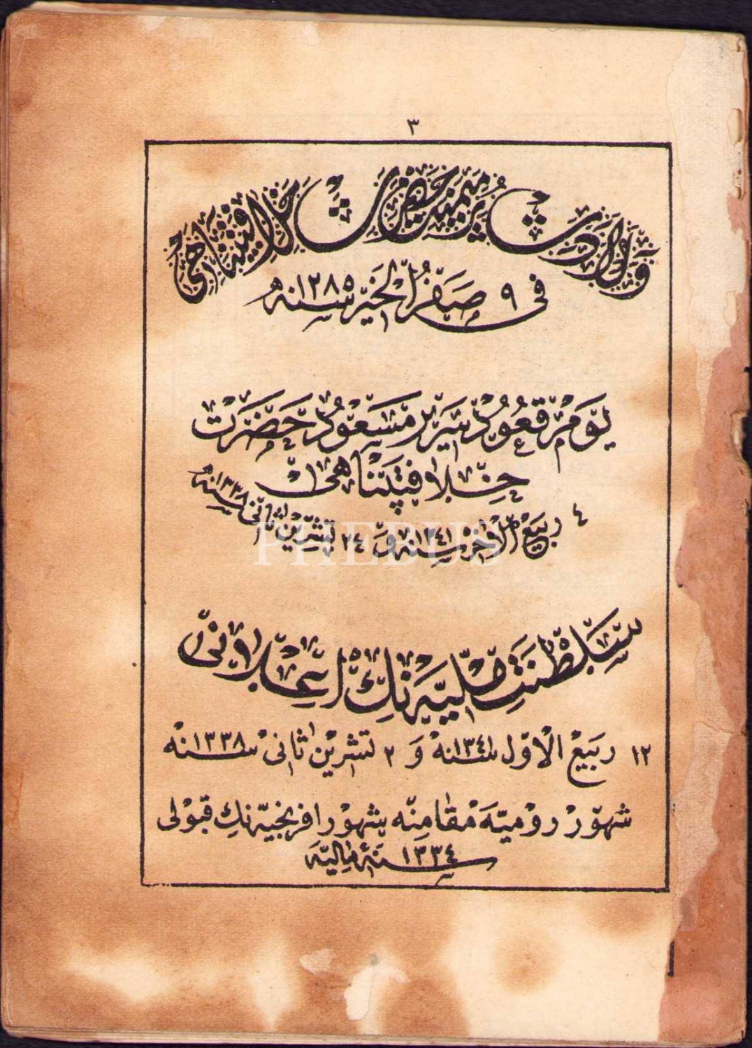 Saltanat-ı Milliye'nin İlanı yazılı 1334 tarihli Osmanlıca Takvim, ilk sayfası eksik, 10x13 cm
