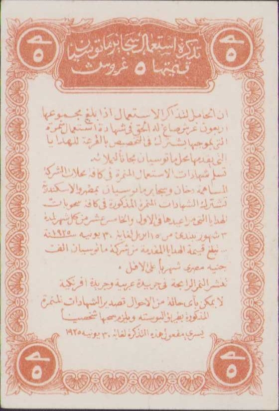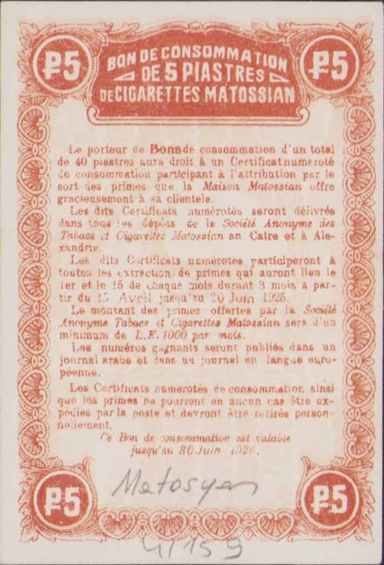 Metosyan sigara kuruşları tüketim kuponu, Fransızca-Osmanlıca yazılı, 5x7cm