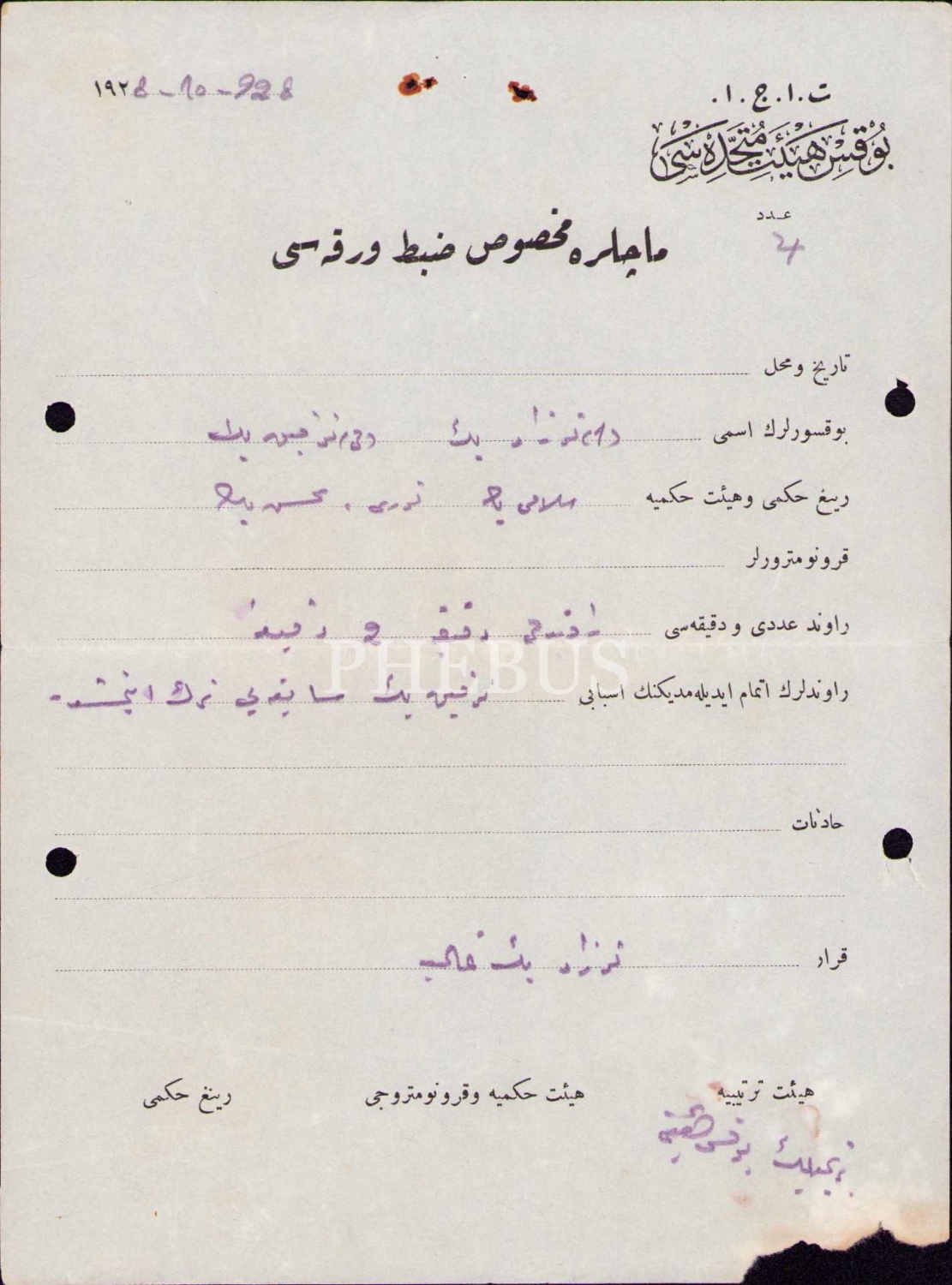 Osmanlıca Boks Heyeti Antetli Maçlara Mahsus Zabt Varakası, Boks Maçının İçeriği Hakkındadır, Boksörlerin İsmi ve Hekim Raporları Mevcut, 1928 tarihli, 17x23 cm