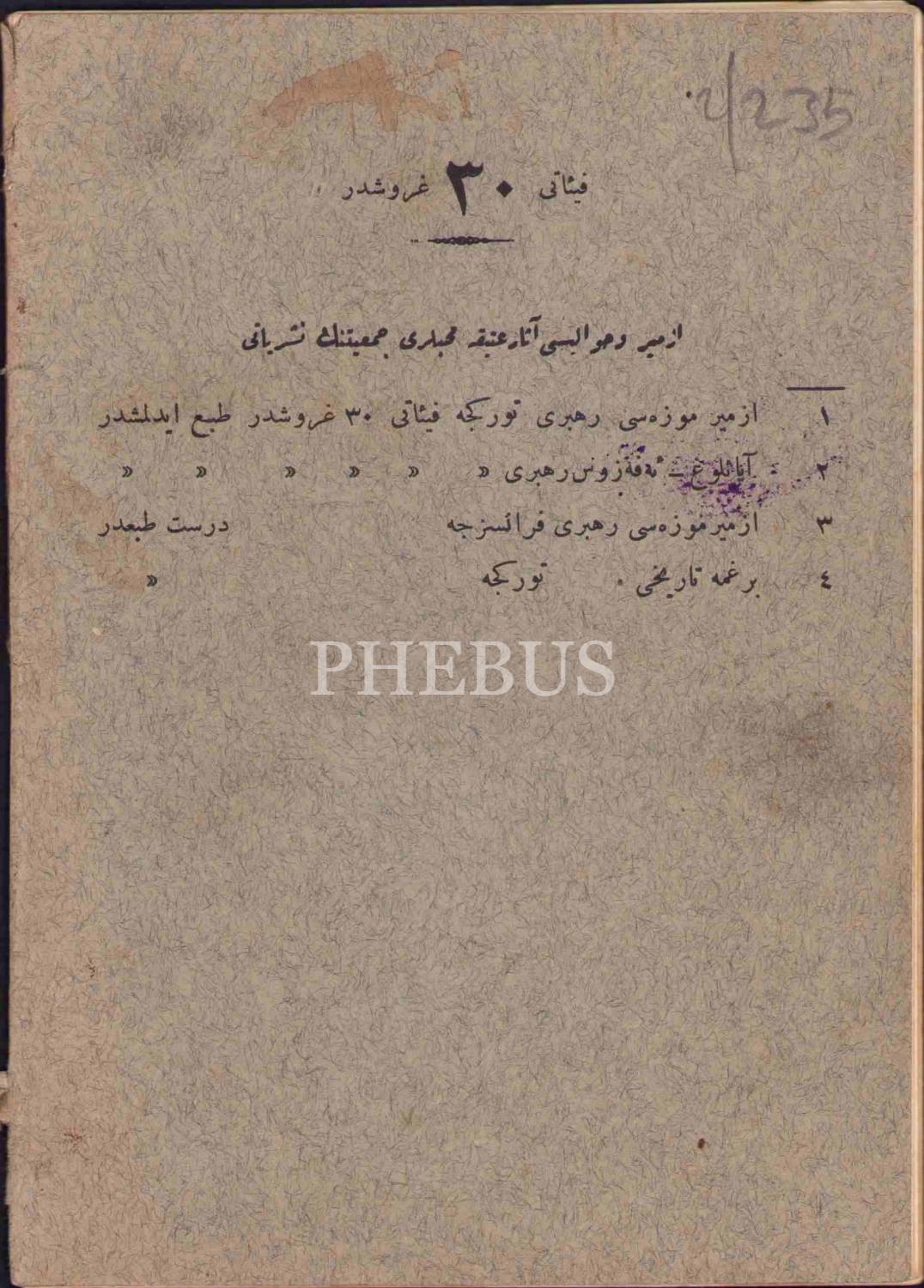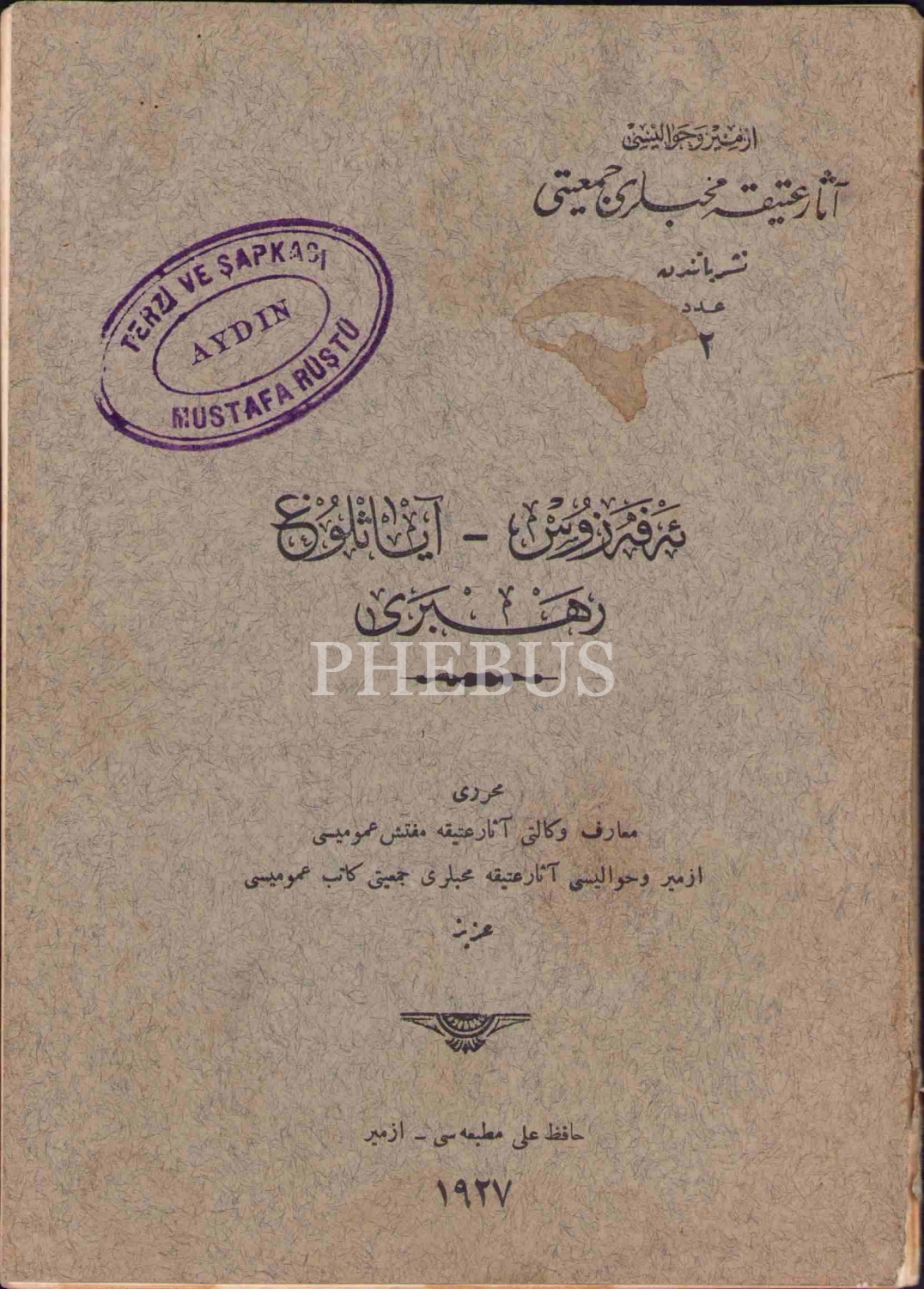 Osmanlıca Eferus-Ayasluğ [Efes Selçuk] Rehberi, Muharriri: Aziz, Terzi ve Şapkacı Mustafa Rüştü Aydın damgalı, İzmir Hafız Ali Matbaası, 1927 tarihli, 42 sayfa, 14x20 cm