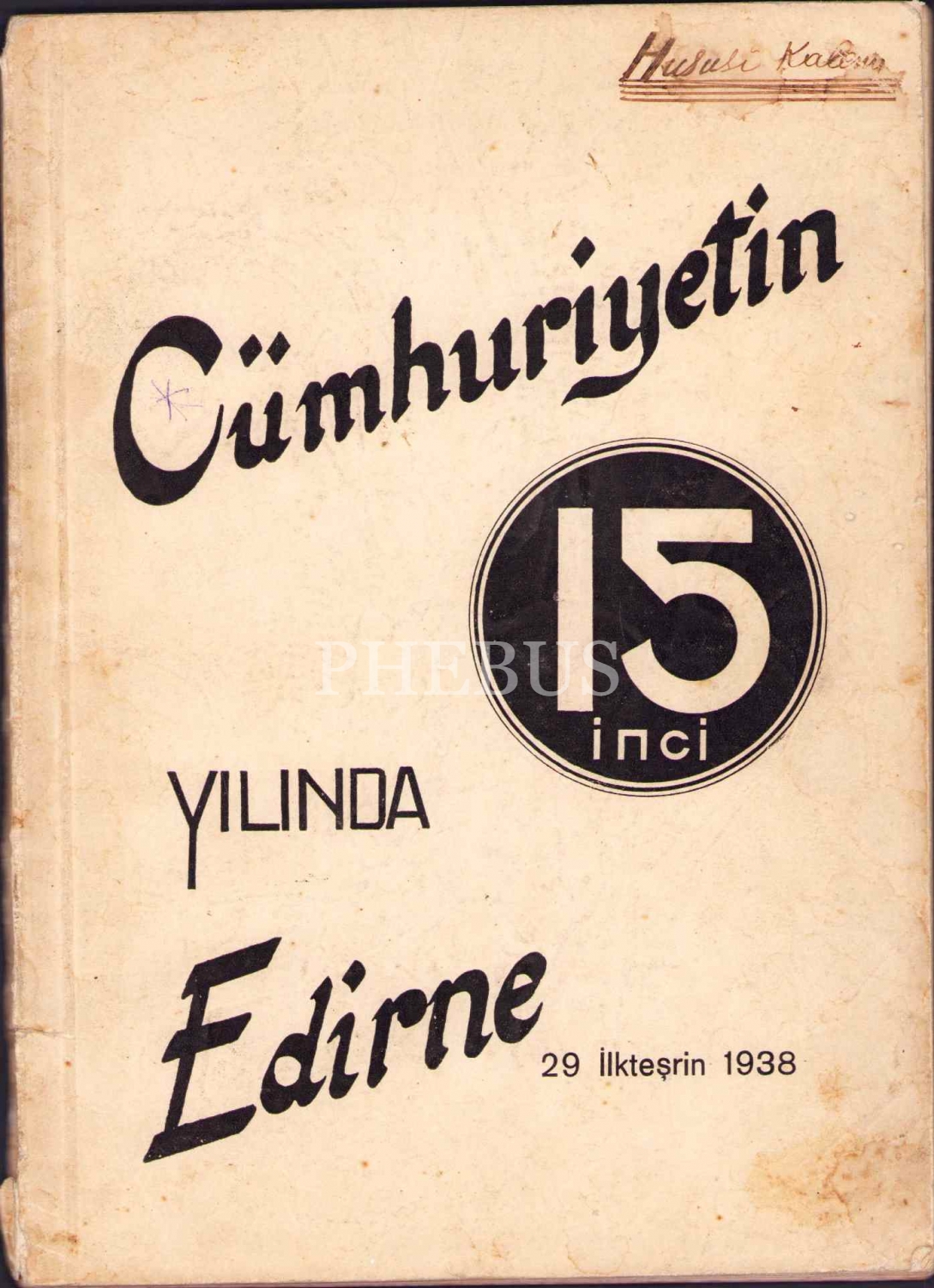 Cumhuriyetin 15'inci Yılında Edirne, 29 İlkTeşrin 1938 tarihli, 98 sayfa, haliyle, 19x27 cm
