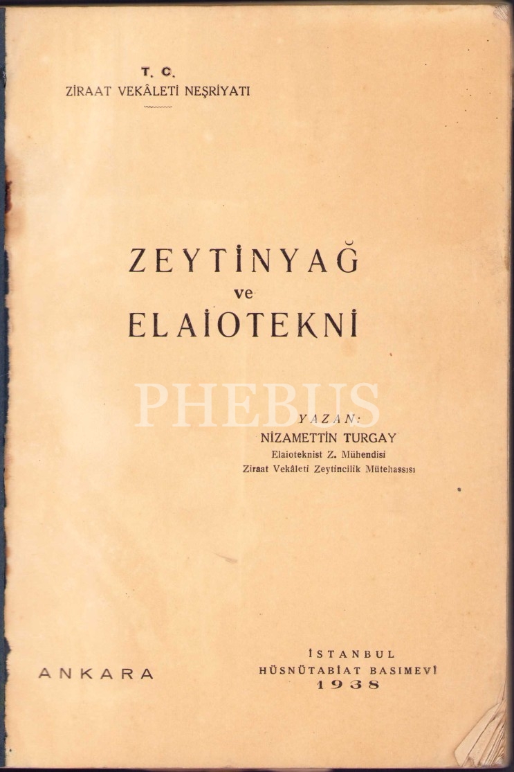 Ziraat Kongresi Zeytinyağı ve Elaiotekni, 1938, Yazan: Nizamettin Turgay, Ankara, İstanbul Hüsnütabiat Matbaası, Ziraat Vekaleti Neşriyatı, 161 sayfa, 16x24 cm