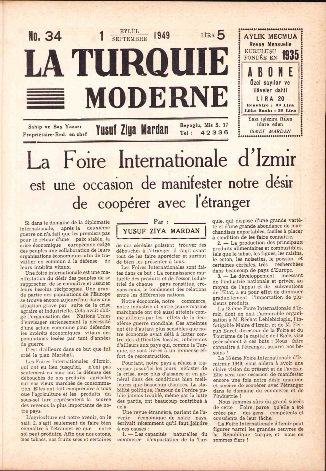 1949 İzmir Fuarı İçin Hazırlanmış Fransızca La Turquie Moderne, 98 sayfa, 24x32 cm
