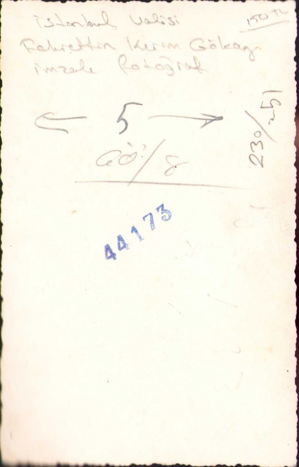 İstanbul Eski Valisi Fahreddin Kerim Gökay'dan İmzalı ve İthaflı Fotoğraf, 1953 tarihli, 9x14 cm