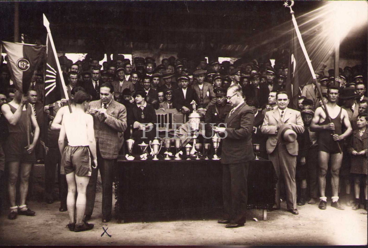 Vali Lütfi Kırdar bir sporcuya madalyasını takdim ediyor, 14x9 cm