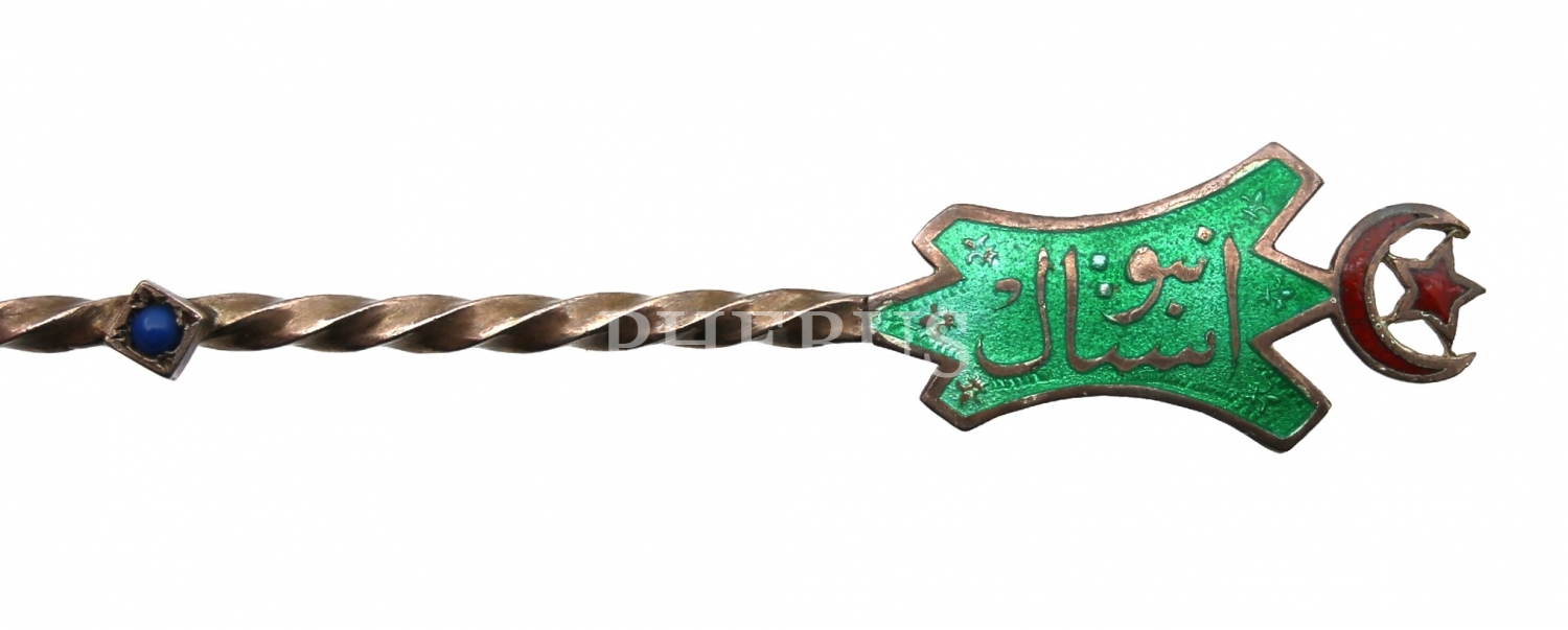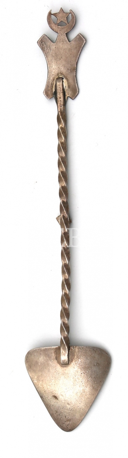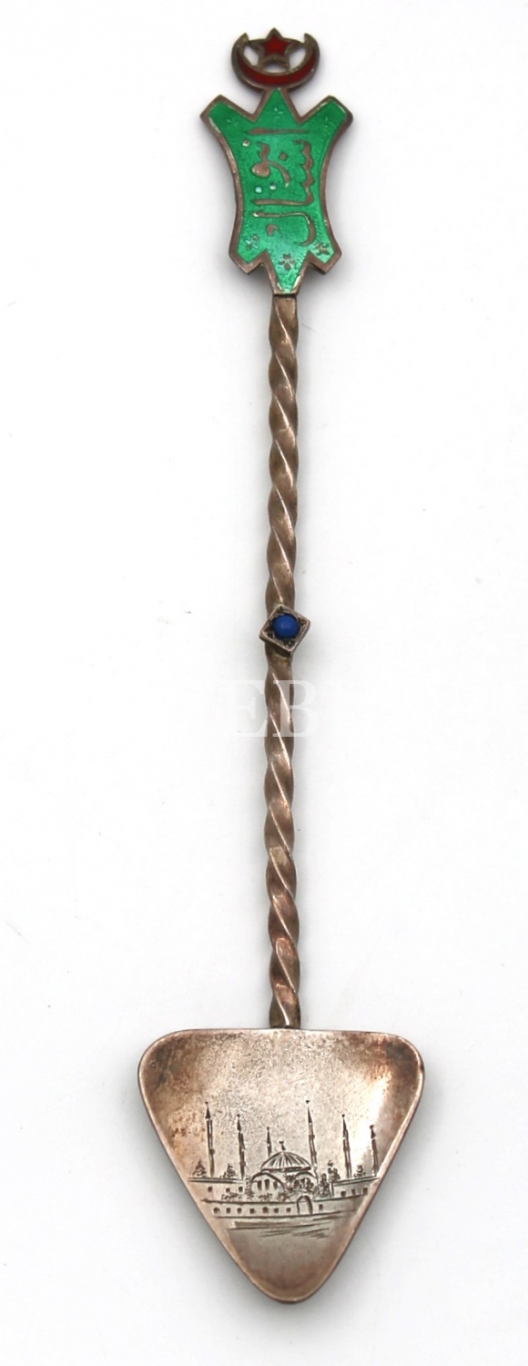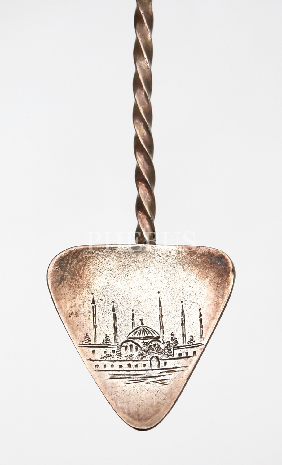Osmanlıca İstanbul yazılı Camii tasvirli gümüş kaşık, ucu ay yıldızlı, 16x2 cm